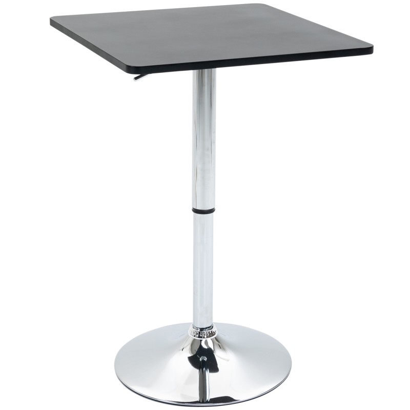 Korkeussäädettävä baaripöytä 69–93 cm, 60x60 cm, metallirunko ja MDF-taso, musta/hopea