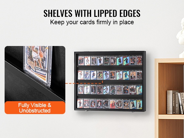 Hyllyissä on korotetut reunat, jotka tukevat kortteja ja auttavat pitämään jokaisen kappaleen tukevasti paikallaan. Kortit eivät pääse helposti liukumaan tai putoamaan, vaan kokoelma pysyy siistinä ja järjestyksessä.