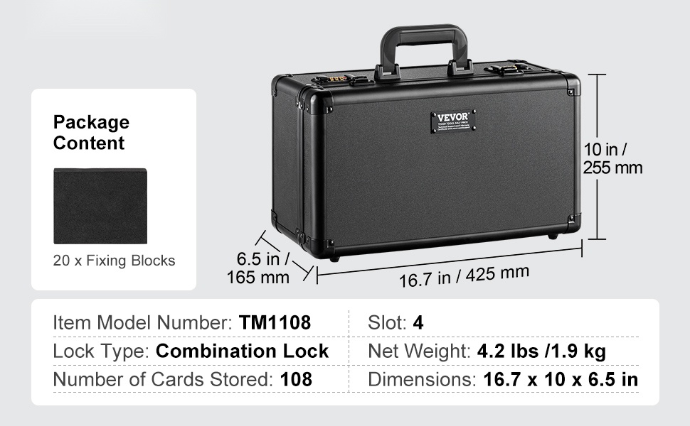 Tässä säilytyslaatikossa on 5 korttipaikkaa, 3.5 in/90 mm leveät urat ja 25 joustavaa vaahtomuovivälilevyä. Laatikkoon mahtuu enintään 162 PSA-luokiteltua korttia, ja se on yhteensopiva myös BGS-, SGC-korttien sekä TOP LOADERS -suojien kanssa. Numerokoodilukko ja tukeva kantokahva auttavat pitämään kokoelmasi turvassa ja helposti mukana kuljetettavana.