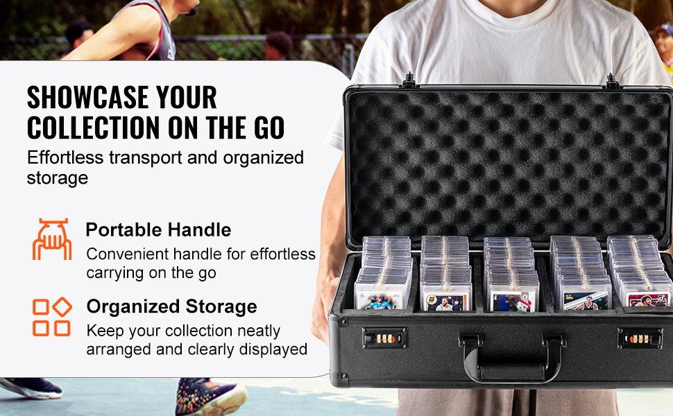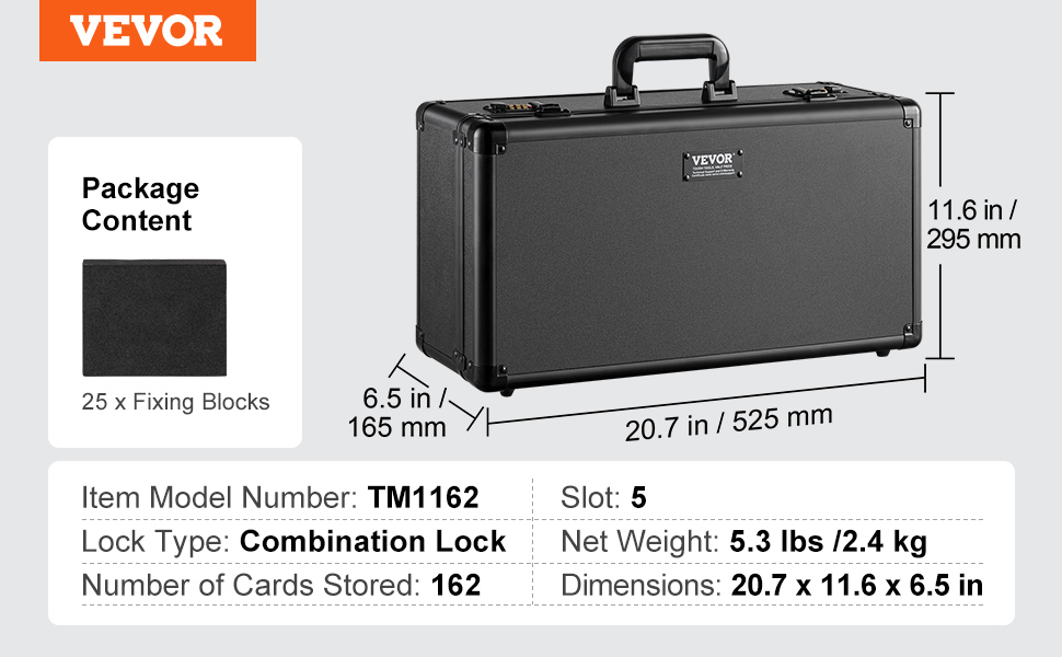 Tässä säilytyslaatikossa on 5 korttipaikkaa, 90 mm leveät urat ja 25 joustavaa vaahtomuovivälilevyä. Laatikkoon mahtuu enintään 162 PSA-luokiteltua korttia, ja se on yhteensopiva myös BGS-, SGC-korttien sekä TOP LOADERS -suojien kanssa. Numerokoodilukko ja tukeva kantokahva auttavat pitämään kokoelmasi turvassa ja helposti mukana kuljetettavana.