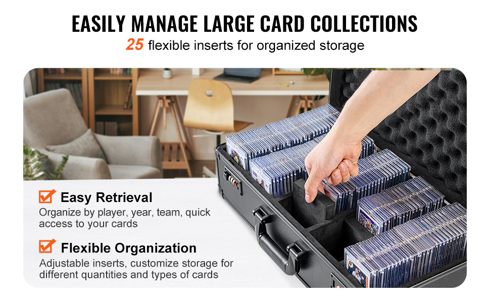 25 joustavaa vaahtomuovivälilevyä mahdollistaa lokeroiden muokkaamisen eri korttikategorioiden mukaan. Voit ryhmitellä kortit esimerkiksi pelaajan, vuoden, joukkueen tai muun sinulle sopivan järjestyksen mukaan ja pitää kokoelman siistinä ja helposti selattavana.