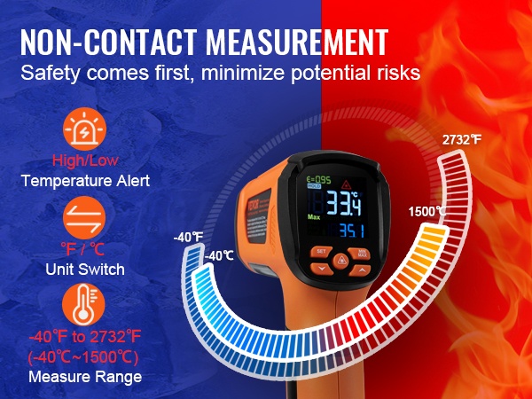 - Lämpötila-alue: -40°F – 2732°F / -40°C – 1500°C