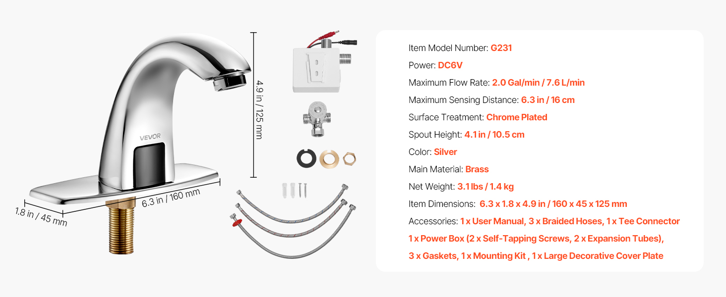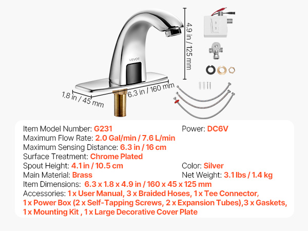 Kosketusvapaa kylpyhuonehana G231, infrapunasensori, paristokäyttöinen, kromattu messinki, 9,5 mm liitäntä, säädettävä lämpötila