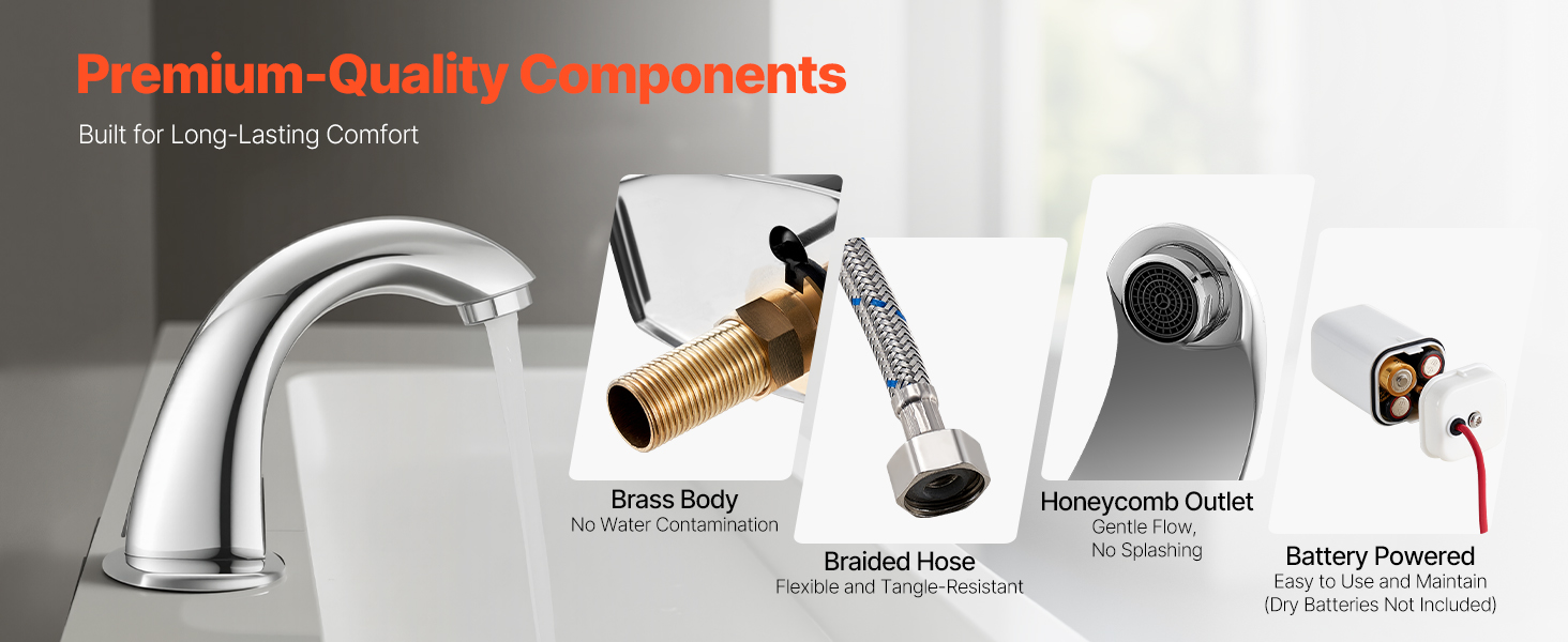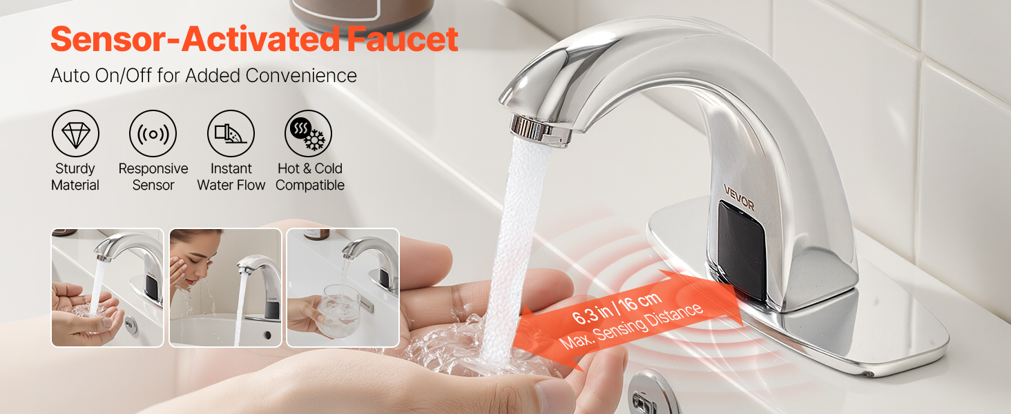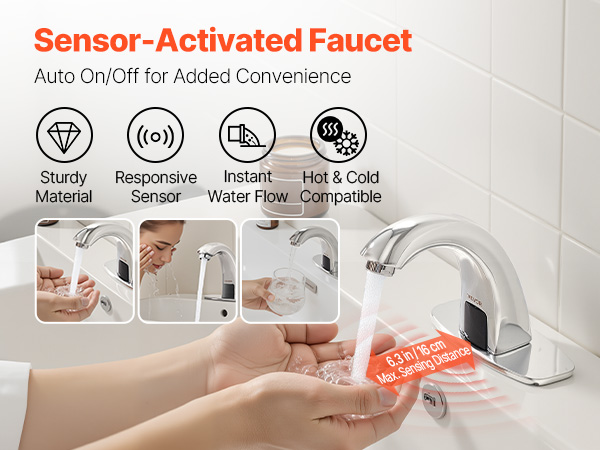 Tämä kosketusvapaa pesuallashana käyttää herkkää infrapunasensoria: vesi alkaa virrata automaattisesti, kun kädet tuodaan hanan lähelle, ja sammuu, kun kädet poistuvat. Hygieeninen ja vaivaton käyttö ilman manuaalista kosketusta.