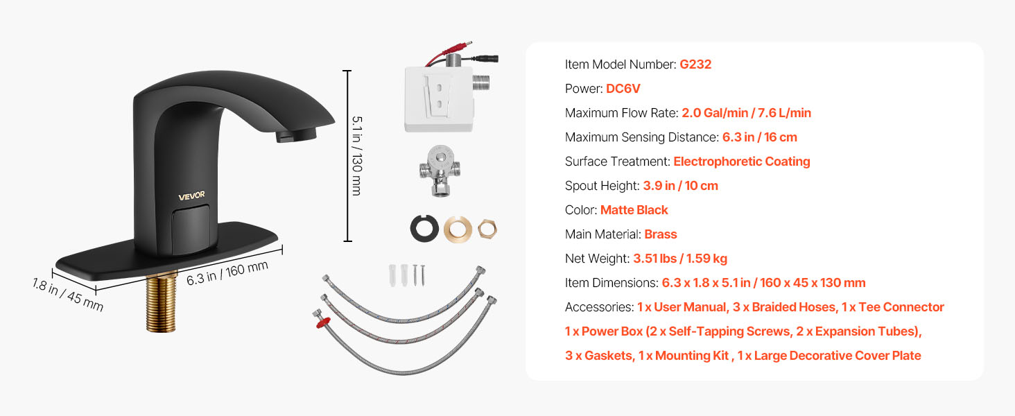 Kosketusvapaa kylpyhuonehana infrapuna-anturilla, säädettävä lämpötila, paristokäyttöinen, messinki, mattamusta, G232
