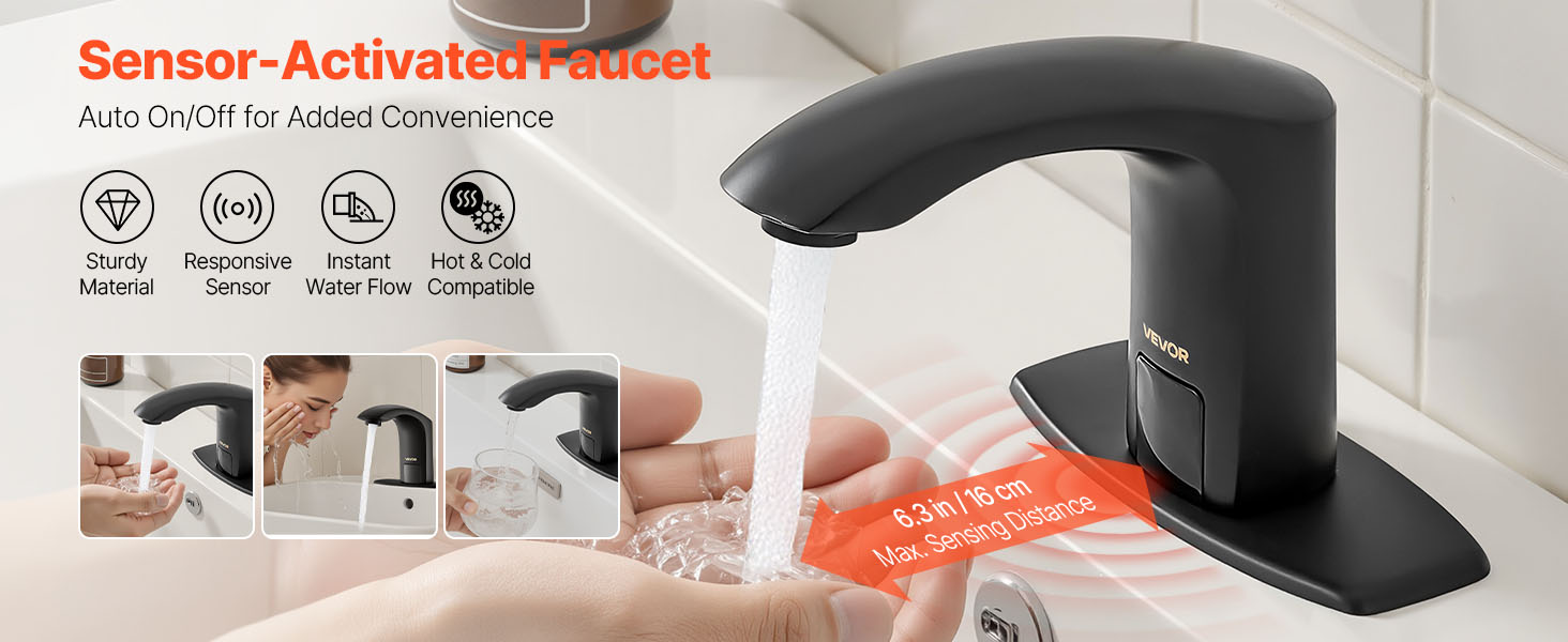Tässä hanassa on herkkä infrapuna-anturi: vesi alkaa virrata automaattisesti, kun kädet tuodaan lähelle, ja pysähtyy, kun ne viedään pois. Käyttö on hygieenistä ja vaivatonta ilman manuaalista kosketusta.