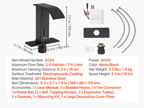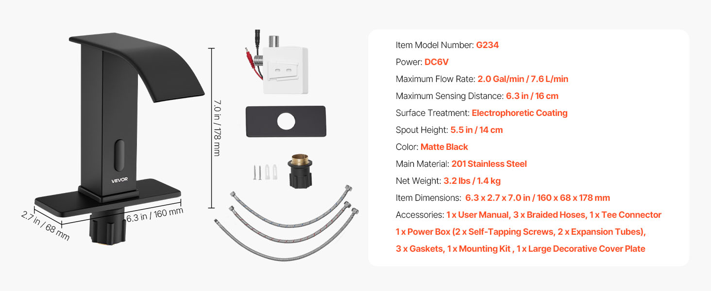 Kosketusvapaa pesuallashana G234 mattamusta ruostumaton teräs, infrapunatunnistin, kuuma ja kylmä vesi