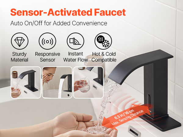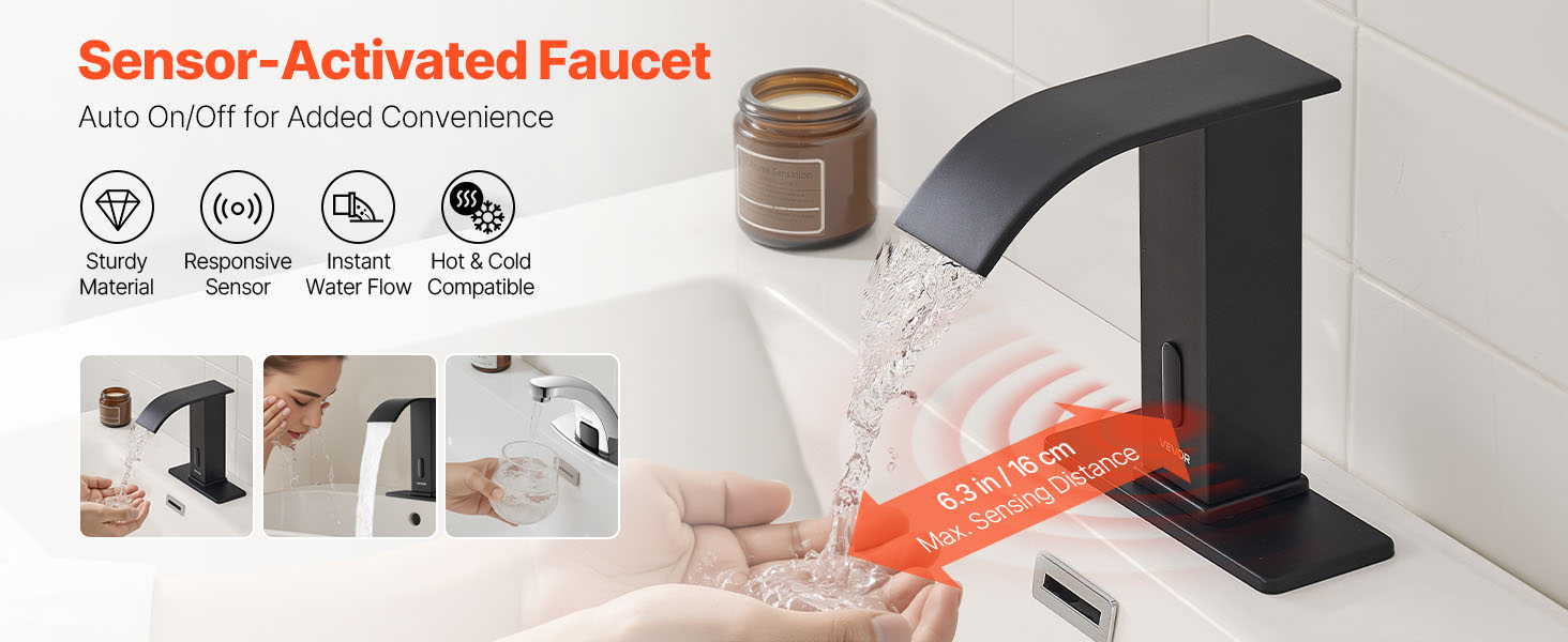 Infrapunatunnistimella varustettu hana käynnistää veden automaattisesti, kun kädet tuodaan anturin lähelle, ja sulkee virtauksen, kun kädet poistuvat. Hygieeninen ja helppokäyttöinen ratkaisu ilman käsin koskemista.