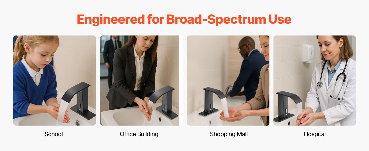 Tyylikäs, moderni mattamusta hana soveltuu monenlaisiin ympäristöihin, kuten koteihin, toimistoihin, hotelleihin, ravintoloihin ja terveydenhuollon tiloihin.