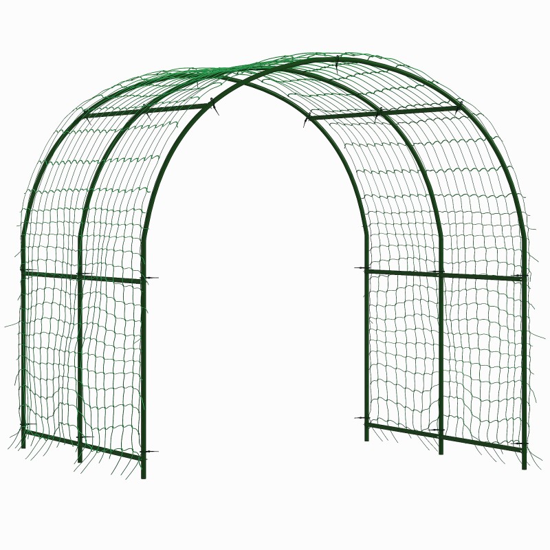 Tämä kaareva teräksinen köynnöstuki tekee kasvien pystykasvatuksesta siistiä ja tilatehokasta. Tummaan vihreään rakenteeseen saat tuettua esimerkiksi kurkut, tomaatit, pavut, herneet, viinirypäleet, melonit ja kurpitsat, ja korkean kulkukorkeuden ansiosta kasvien hoito ja sadonkorjuu on helppoa molemmilta puolilta.