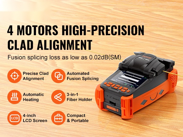 - 4 korkealaatuista moottoria ja vaippakohdistus tarkkaan kuituhitsaukseen