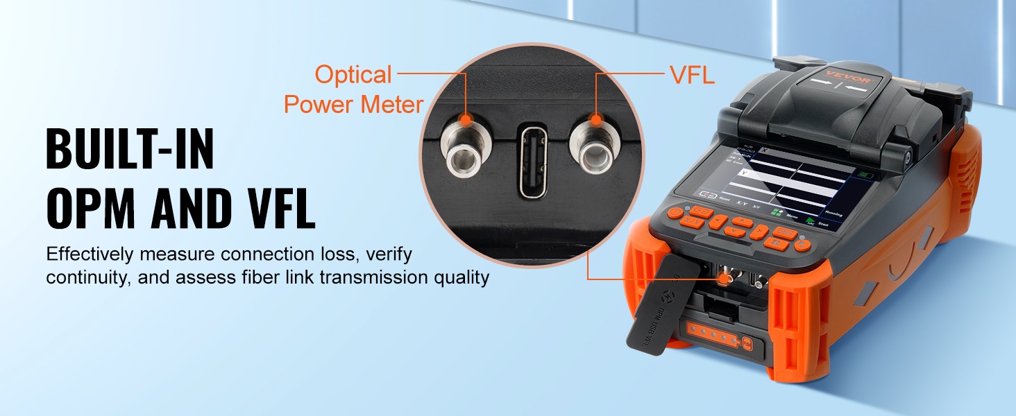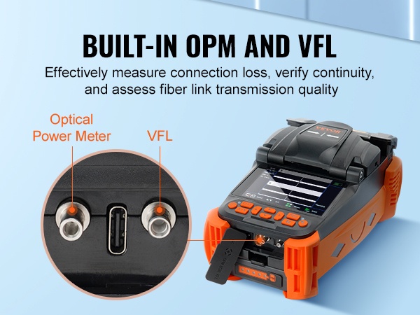 Integroitu optinen tehonmittari (OPM) ja näkyvän valon vikatunnistin (VFL) ohjataan mikroprosessorilla, mikä antaa korkean mittaustarkkuuden ja pienen virhemarginaalin. Aallonpituusmuisti tallentaa ennen virrankatkaisua asetetun testiaallonpituuden. 6 erilaista testiaallonpituutta kattavat useimmat mittaustilanteet.
