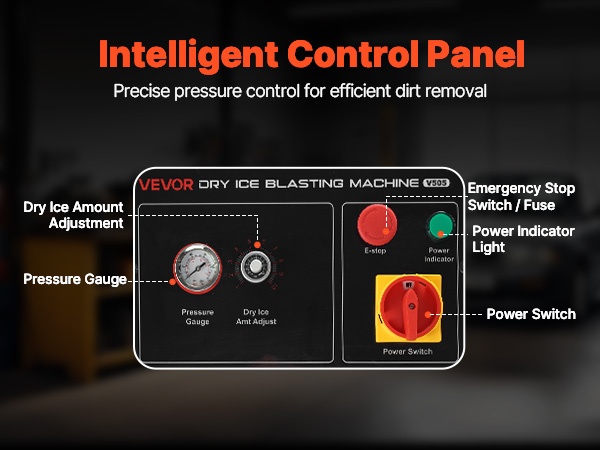 Tällä kuiva jääpuhalluskoneella puhdistat ajoneuvojen ja teollisuuden kohteita turvallisesti ja tehokkaasti. Älykäs ohjauspaneeli mahdollistaa puhalluspaineen ja kuivan jään määrän tarkan säädön, joten voit mukauttaa puhdistuksen eri pinnoille ja käyttökohteisiin, kuten sähkövoimateollisuuteen, valimoihin, autoteollisuuteen, meri- ja ilmailualaan sekä kemianteollisuuteen.