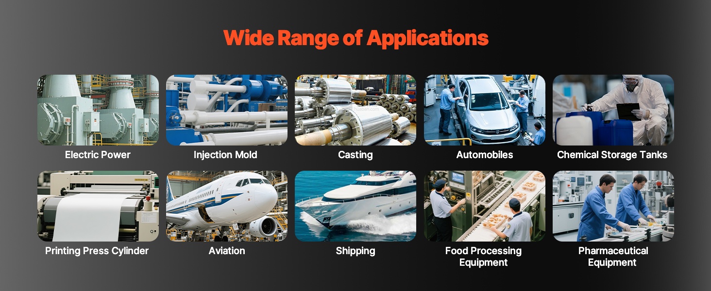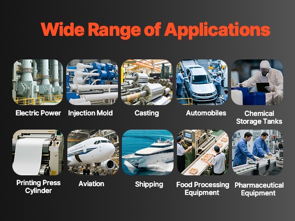 Käytetään laajalti esimerkiksi sähkövoimalaitoksissa, ruiskuvalumuoteissa, valimoissa, ajoneuvojen osien puhdistuksessa, painokoneiden sylintereissä, kemikaalien säiliöissä, ilmailu- ja laivateollisuudessa, elintarvikkeiden käsittelylaitteissa sekä lääketeollisuuden laitteissa.