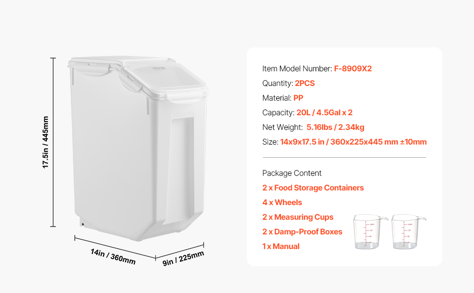Tämä 2 kpl säilytysastiapaketti sopii hyvin riisille, viljalle, jauhoille, muroille ja lemmikkien kuivaruoalle. Astiat ovat helposti liikuteltavia, tiiviitä ja helppohoitoisia, joten ne auttavat pitämään keittiön tai varaston siistinä ja järjestyksessä.