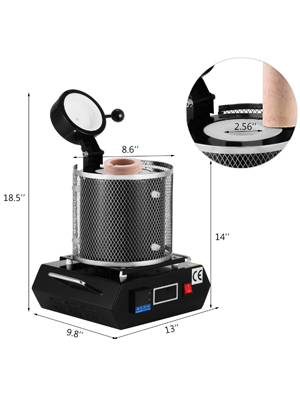 Kullan sulatusuuni 1350 W digitaalisella ohjauksella 1150 °C 3 kg keraamisella upokkaalla jalometallien sulatukseen