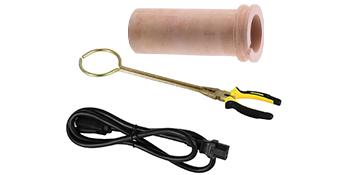 Pakkaukseen kuuluu sulatusuuni, upokas, pihdit ja käyttöohje.