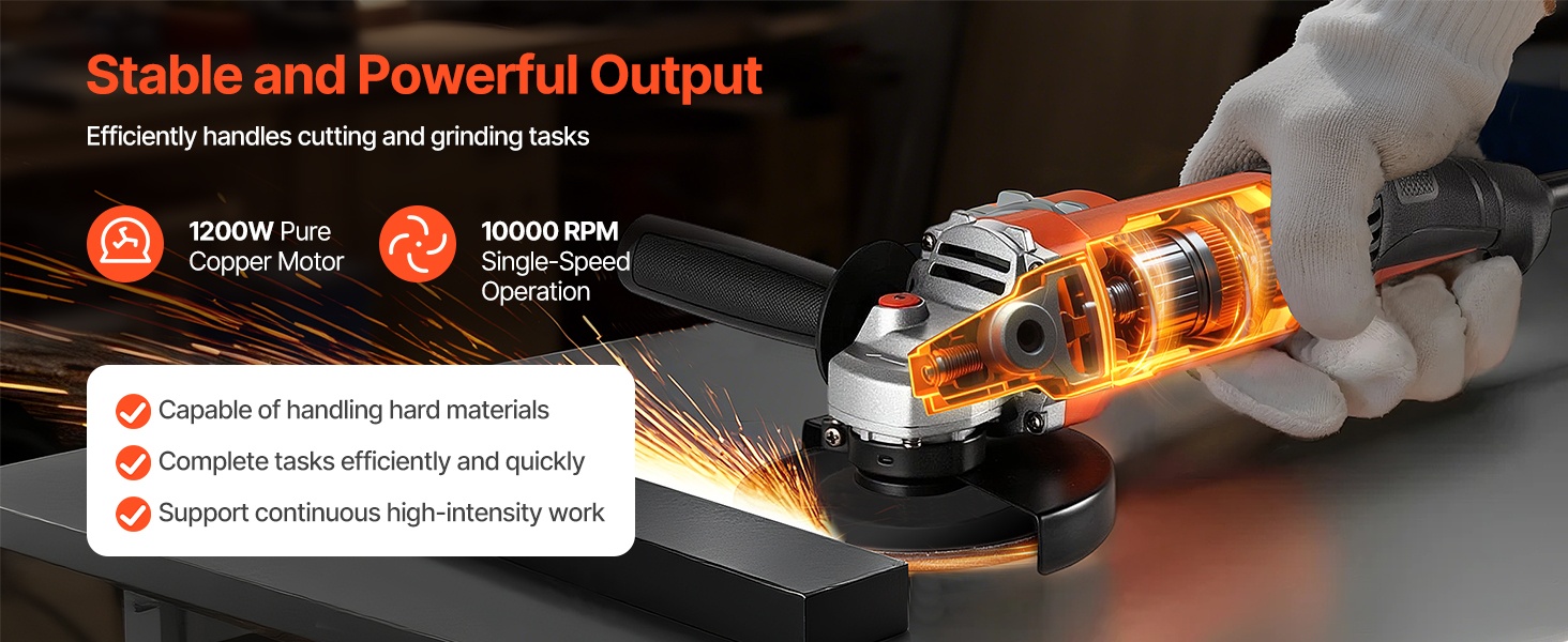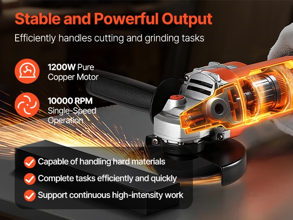 - Kiinteä 8500 RPM kierrosnopeus nopeaan katkaisuun ja hiontaan