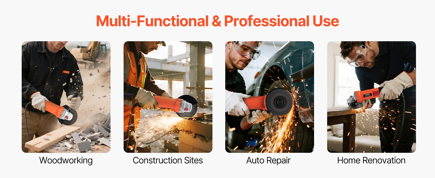 Kulmahiomakone soveltuu hyvin puutyöhön, rakennustyömaille, autokorjaukseen ja erilaisiin remonttikohteisiin. Sillä voidaan katkaista ja hioa metallia, poistaa ruostetta ja siistiä hitsaussaumoja useissa käyttökohteissa.