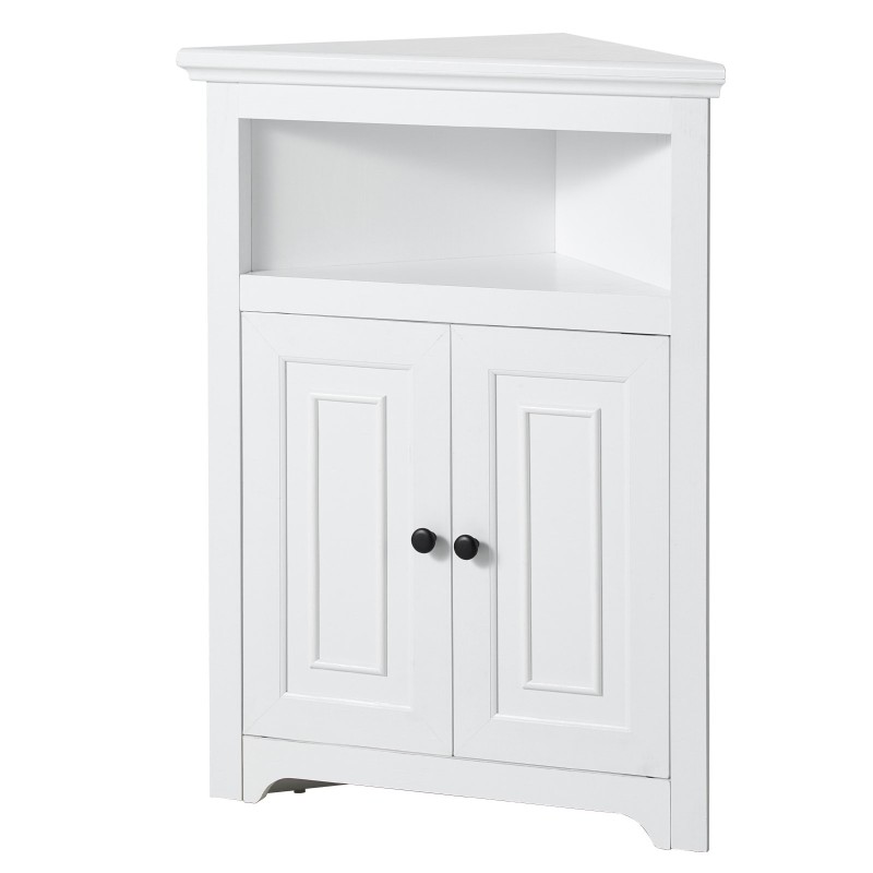 Tämä kulmakaappi hyödyntää muuten tyhjiksi jäävät huoneen kulmat ja muuttaa ne käytännölliseksi säilytystilaksi. Kolme säädettävää hyllytasoa tarjoavat tilaa esimerkiksi astioille, keittiötarvikkeille, pyyhkeille tai puhdistusaineille olohuoneessa, keittiössä, kodinhoitohuoneessa tai kylpyhuoneessa.