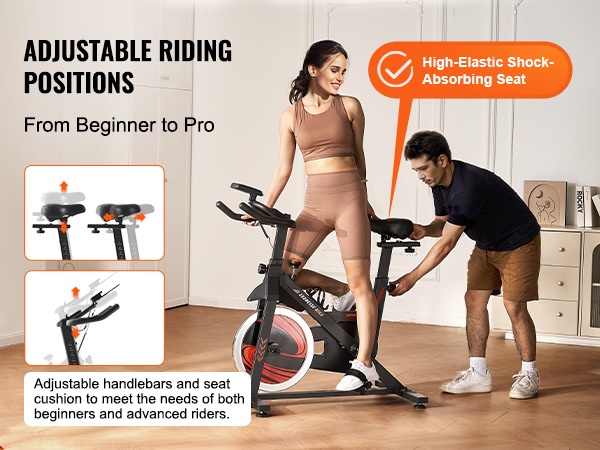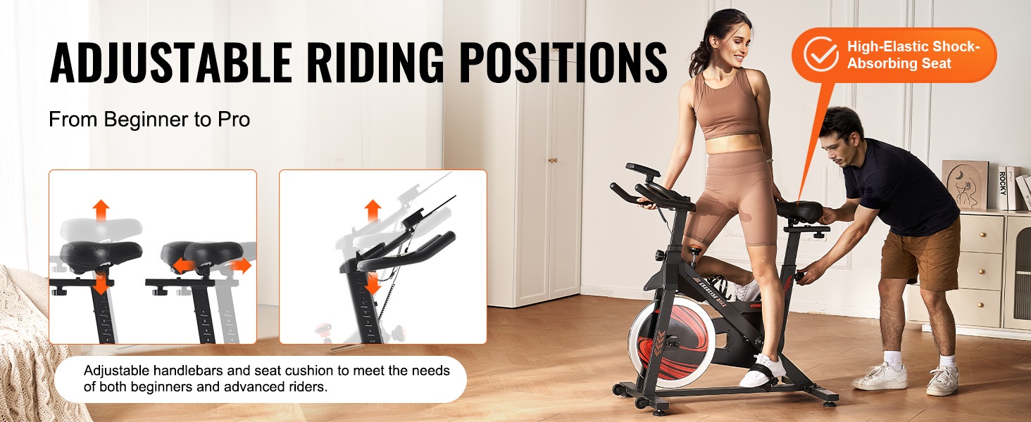 Pyörässä on 2-suuntainen, liukumaton ohjain sekä 4-suuntainen pehmustettu istuin, joten erilaiset käyttäjäpituudet on helppo huomioida. Säätämällä istuimen ja ohjaustangon korkeutta ja etäisyyttä löydät mukavan ja ergonomisen ajoasennon, joka auttaa keskittymään harjoitukseen.