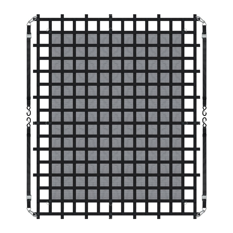 6.5 in x 6.5 in silmäkoko muodostaa tiheän verkon, joka peittää suuret tavarat, kuten jääkaapit ja matkalaukut, ja samalla estää pienempien esineiden putoamisen verkon välistä.
