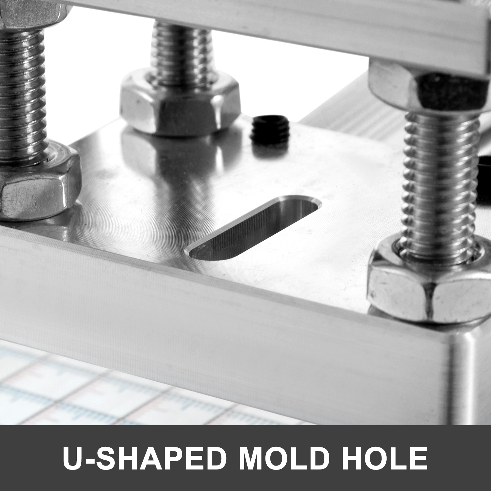 U-muotoinen liikuteltava messinkimuotin kiinnitysaukko tekee messinkimuottien asennuksesta ja vaihdosta vaivatonta. Rakenne soveltuu myös suuremmille tuotteille ja tarjoaa leveämmän foliointialueen.