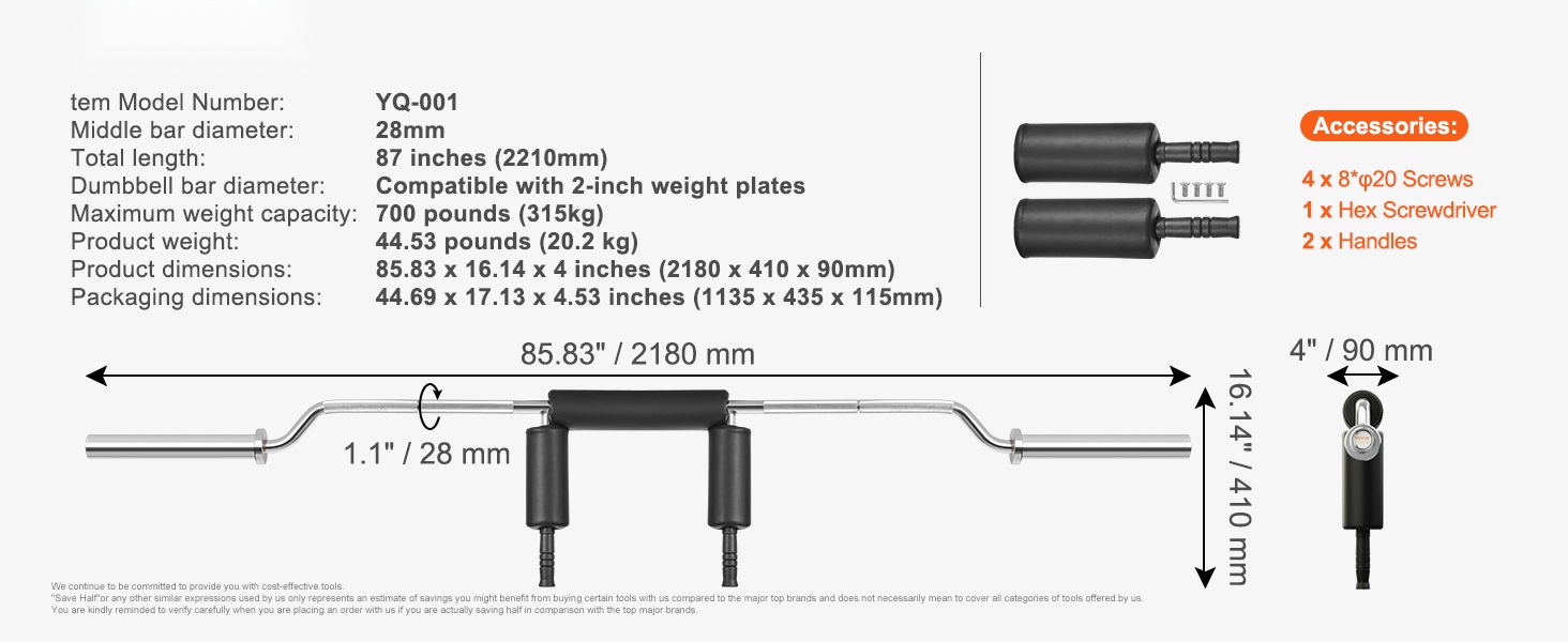 - Tangon päiden halkaisija: yhteensopiva 2-inch levypainojen kanssa