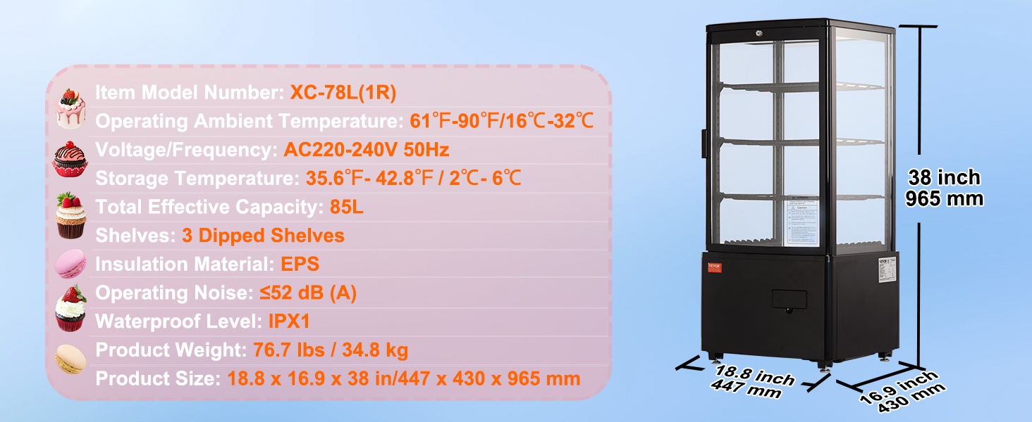 - Tilavuus: 3.5 cu.ft / 100L – kompakti mutta tilava kylmävitriini pöytätasokäyttöön