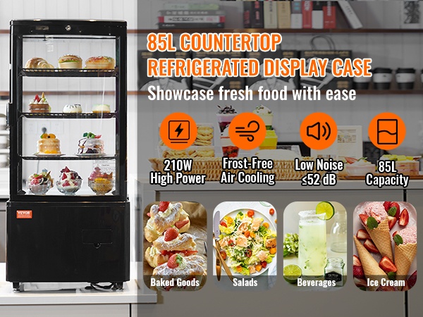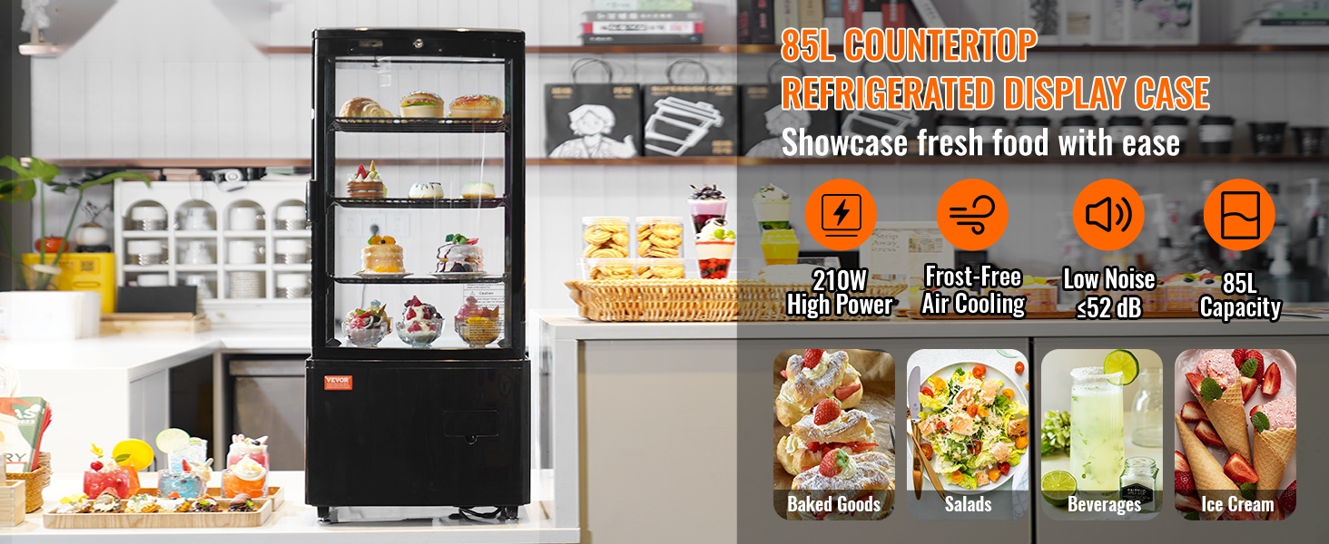 Tämä siisti kylmävitriini on mitoitukseltaan sopiva kassoille, myyntitiskeille, liikehuoneistojen ikkunoihin tai kaappien päälle. Kaksitasoinen rakenne auttaa hyödyntämään pystysuunnan, jolloin pienestä lattiapinta-alasta saadaan enemmän myyntipintaa.