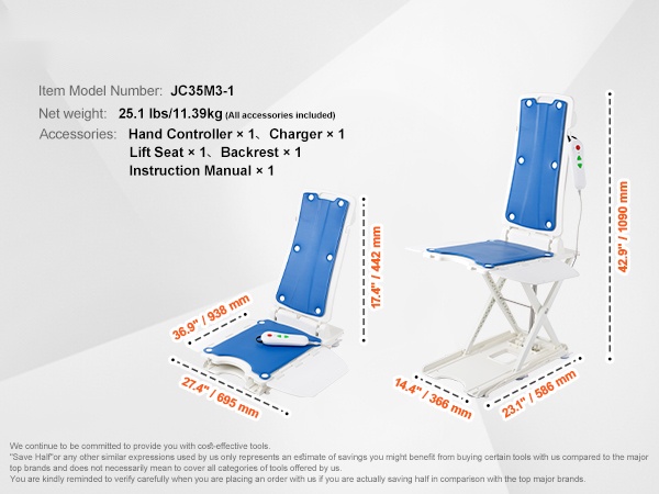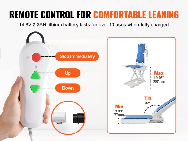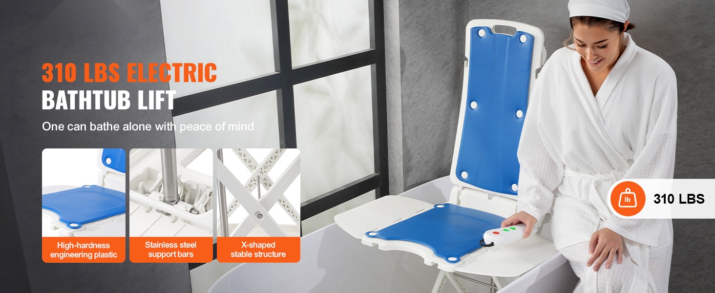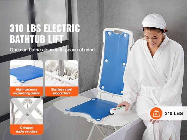 Kylpyammeen sähköinen nostin vedenpitävä muovi istuinkorkeus 77–507 mm 140,6 kg 45° selkänoja