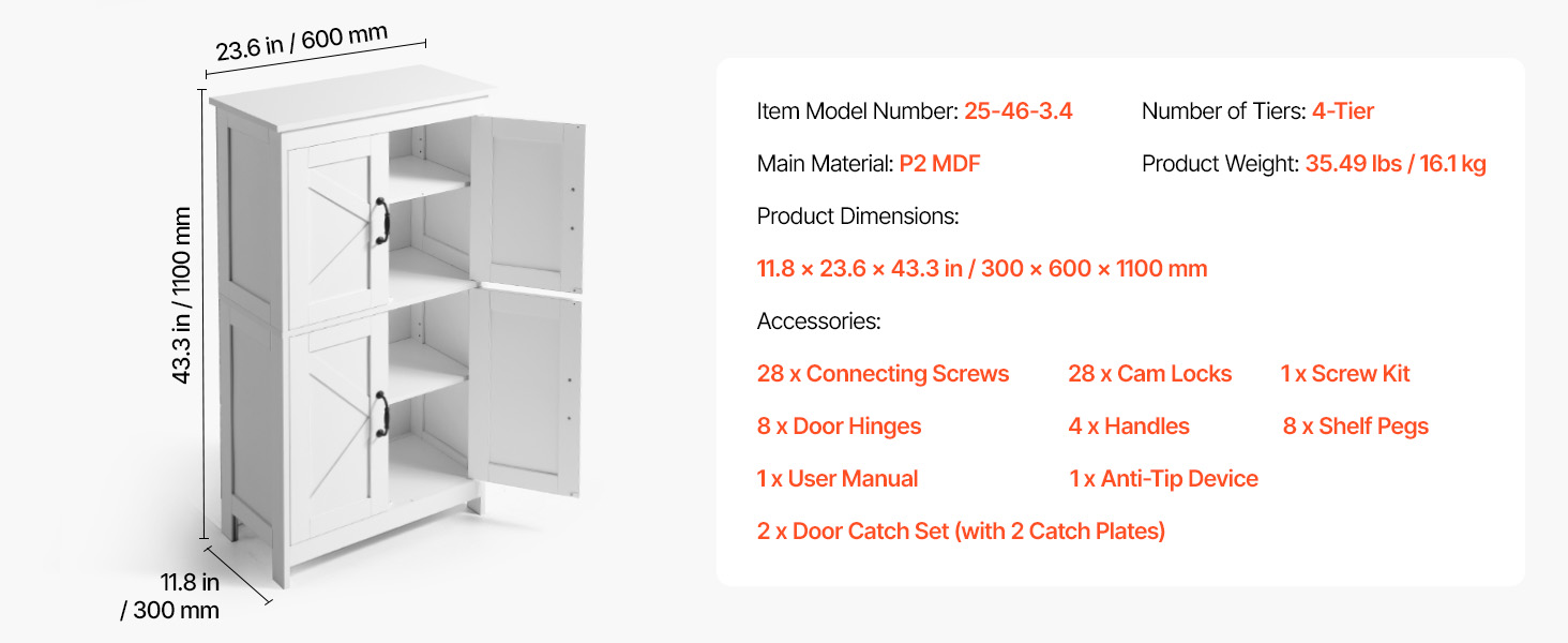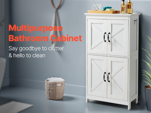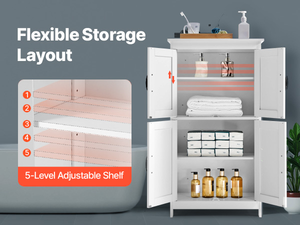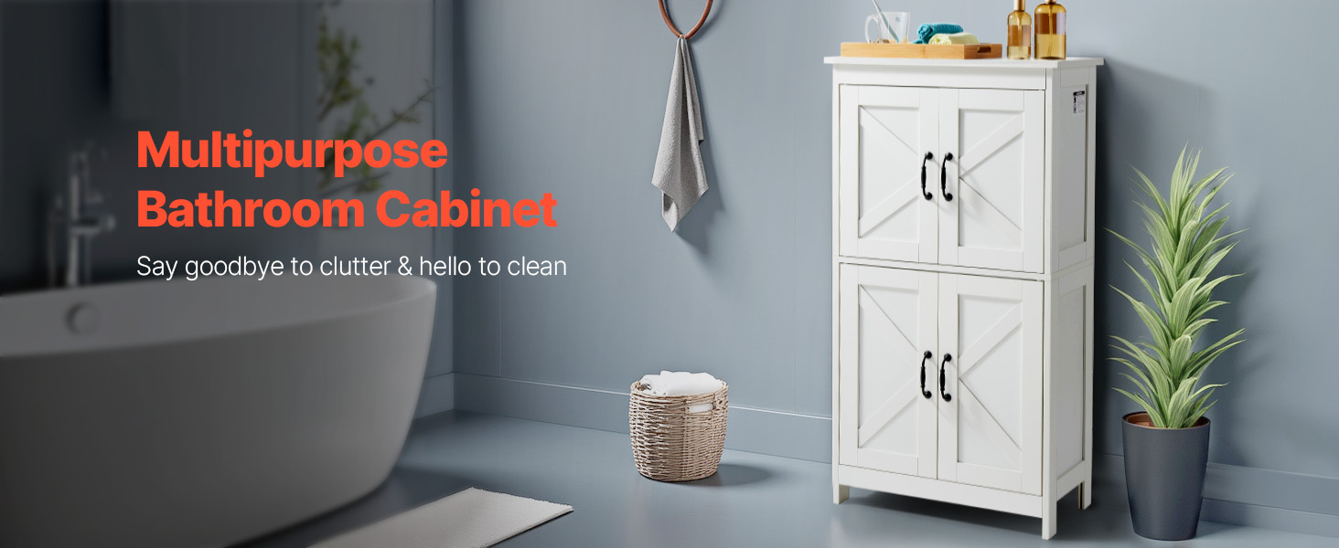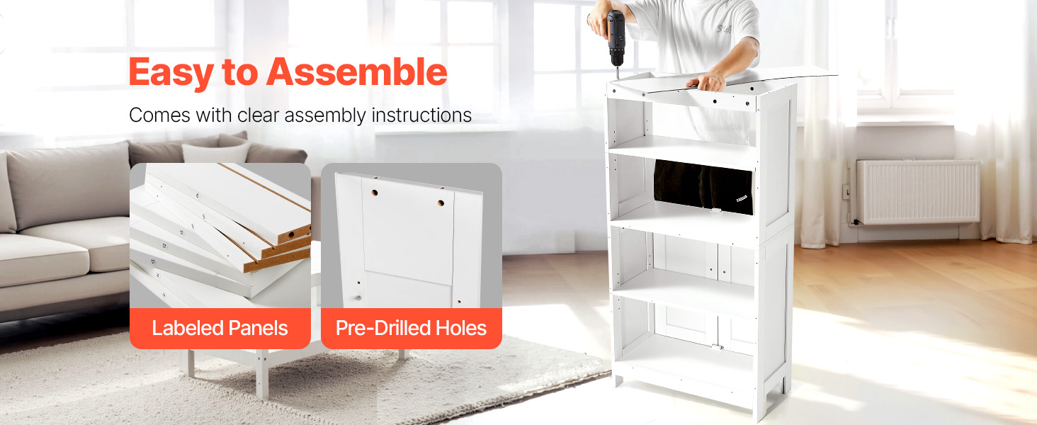 Tämä valkoinen puinen lattialla seisova kaappi tarjoaa neljä tasoa säilytystilaa ja auttaa pitämään kylpyhuoneen, eteisen tai olohuoneen siistinä. Kompakti koko mahtuu hyvin pieniin tiloihin, ja selkeälinjainen skandinaavinen ilme sopii monenlaiseen sisustukseen. Vesitiivis pinta on helppo pyyhkiä puhtaaksi.