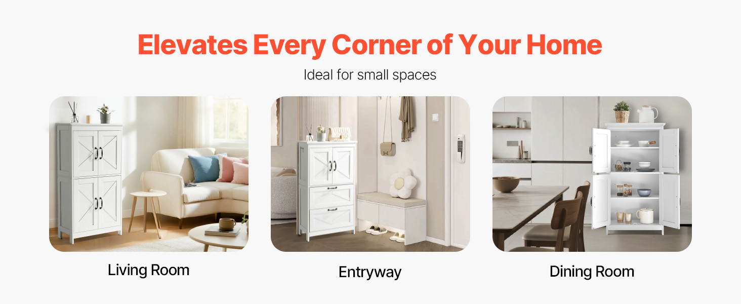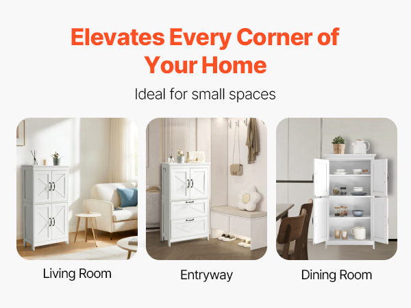 Valkoinen, pelkistetty viimeistely sulautuu helposti eri sisustustyyleihin. Kompakti, mutta käytännöllinen koko sopii erityisesti kylpyhuoneeseen, eteiseen tai olohuoneeseen, tuoden lisää säilytystilaa ja auttaen pitämään kodin järjestyksessä.