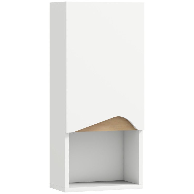Tyylikäs seinään kiinnitettävä kylpyhuonekaappi tuo lisää säilytystilaa pieneenkin tilaan. Kompakti kaappi tarjoaa sekä avohyllyn että ovellisen tilan säädettävällä hyllyllä, joten peseytymistarvikkeet, pyyhkeet ja muut arjen tavarat pysyvät siististi järjestyksessä. Pehmeästi sulkeutuva ovi tekee käytöstä miellyttävää ja hiljaista, ja helposti puhdistettava pinta sopii hyvin päivittäiseen käyttöön.