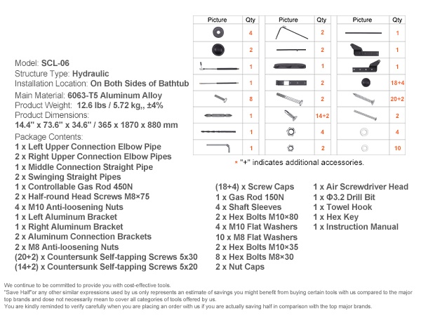 Hydraulinen kylpytynnyrin ja porealtaan kannen nostin helpottaa kannen avaamista, sulkemista ja säilytystä. Se sopii useimpiin suorakulmaisiin kylpytynnyreihin ja porealtaisiin, ja sen tukeva alumiinirakenne varmistaa sujuvan ja vakaan käytön.