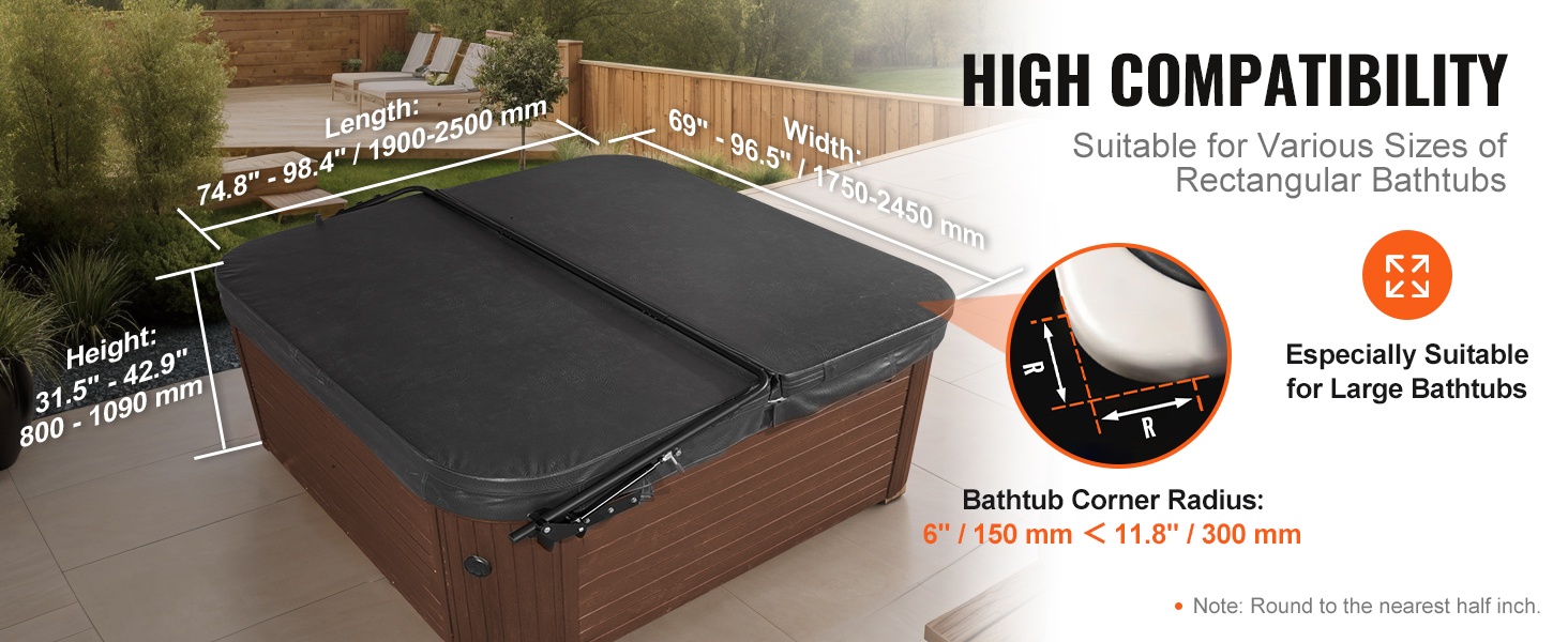 - Säädettävä leveys 69" (175.3 cm) – 96.5" (245 cm) erilaisiin suorakulmaisiin altaisiin