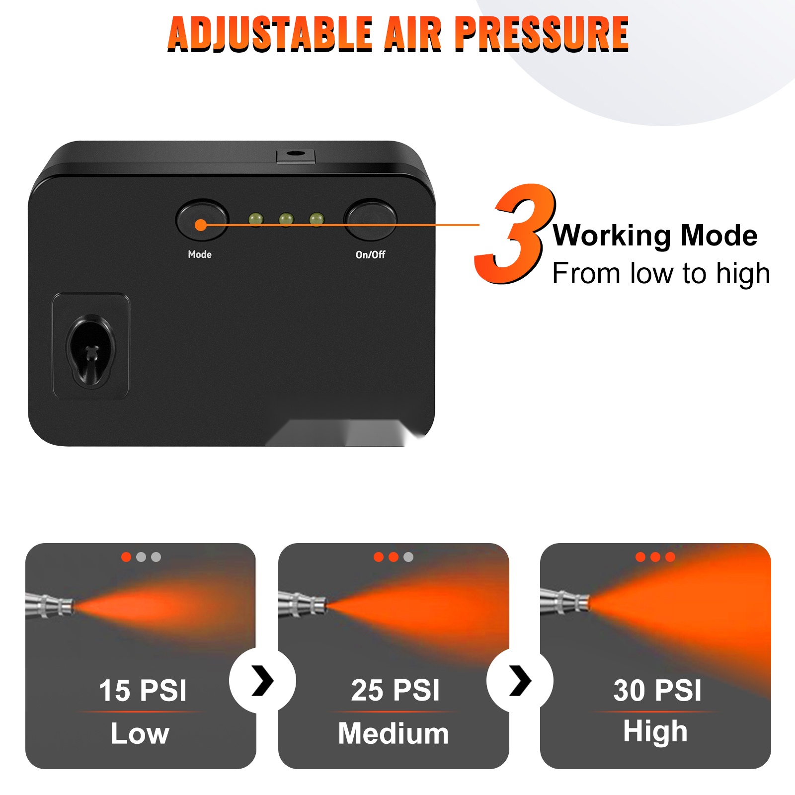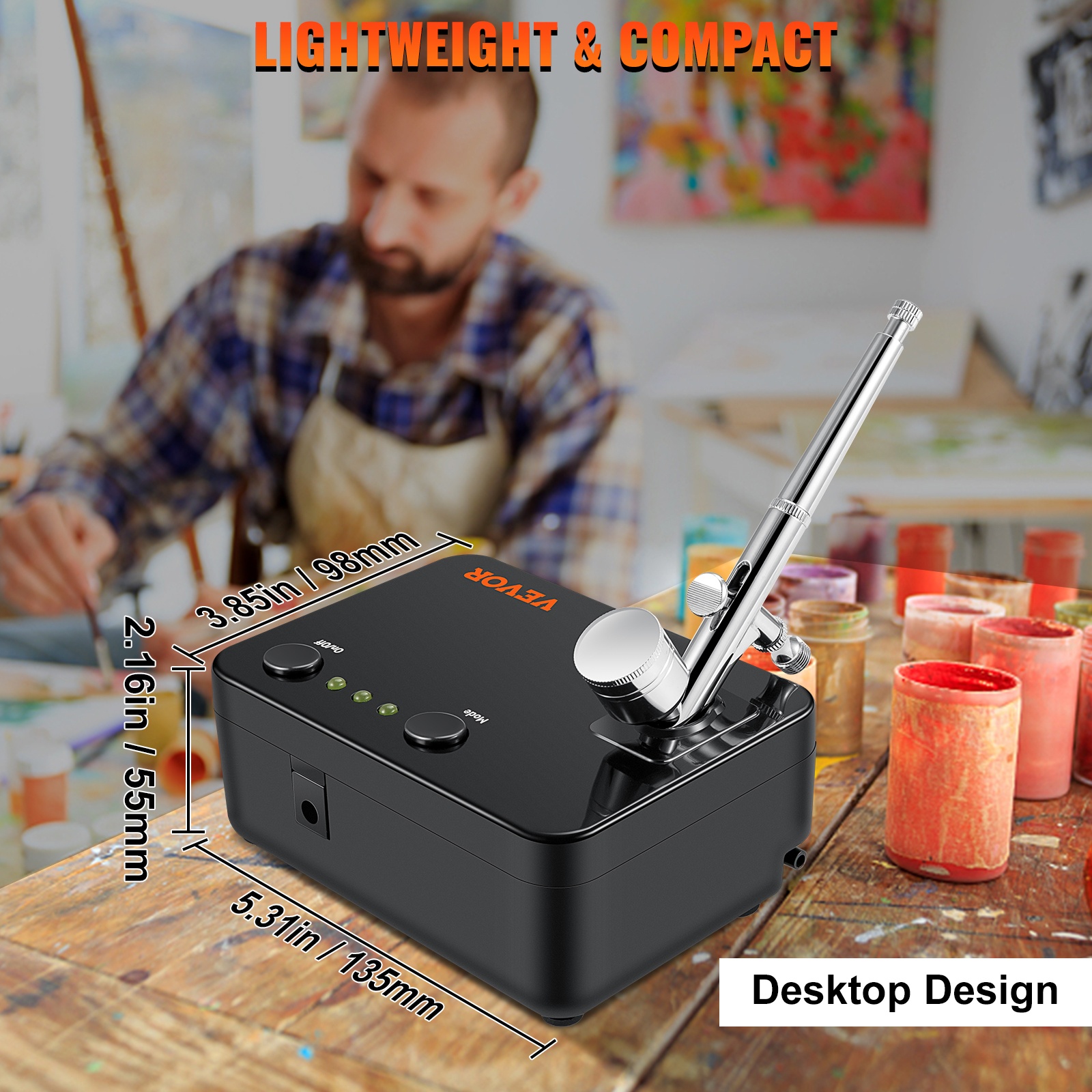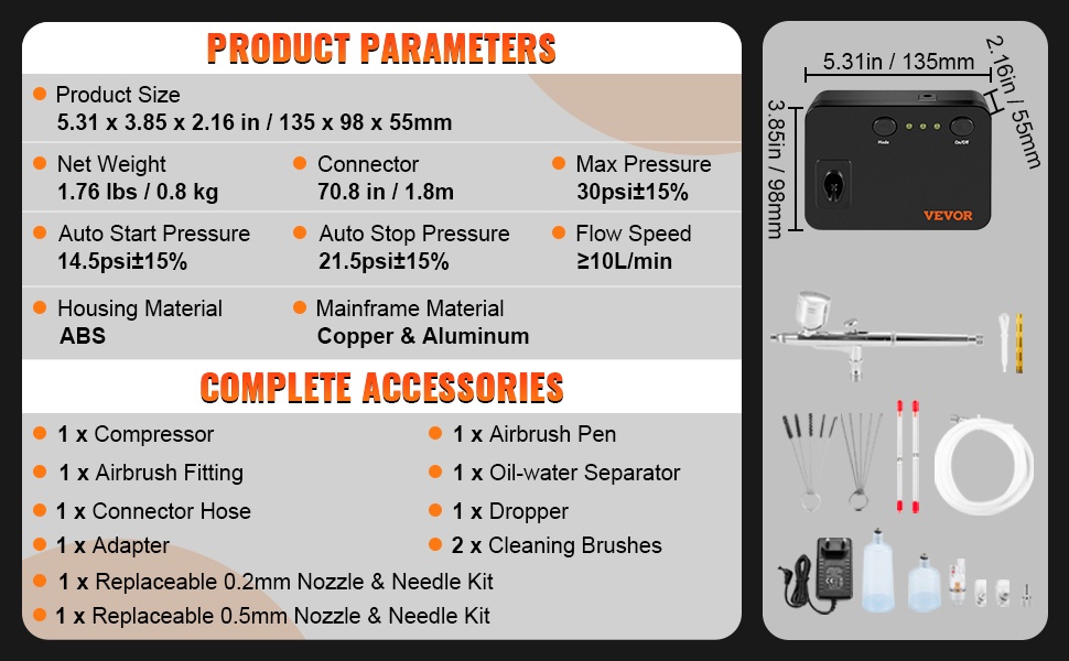 Ammattilaistason kynäruiskusarja kompaktilla mäntäkompressorilla. Kynäruiskuissa on painovoimasyöttö ja kaksoistoiminen rakenne, ja mukana tulee 3 erilaista irrotettavaa suutinsarjaa erilaisten ruiskutusjälkien ja tarkkuuden saavuttamiseksi. Soveltuu esimerkiksi askarteluun, pienoismalleihin, väliaikaisiin tatuointeihin, kakkujen ja leivonnaisten koristeluun, taiteeseen sekä kynsikoristeluun.
