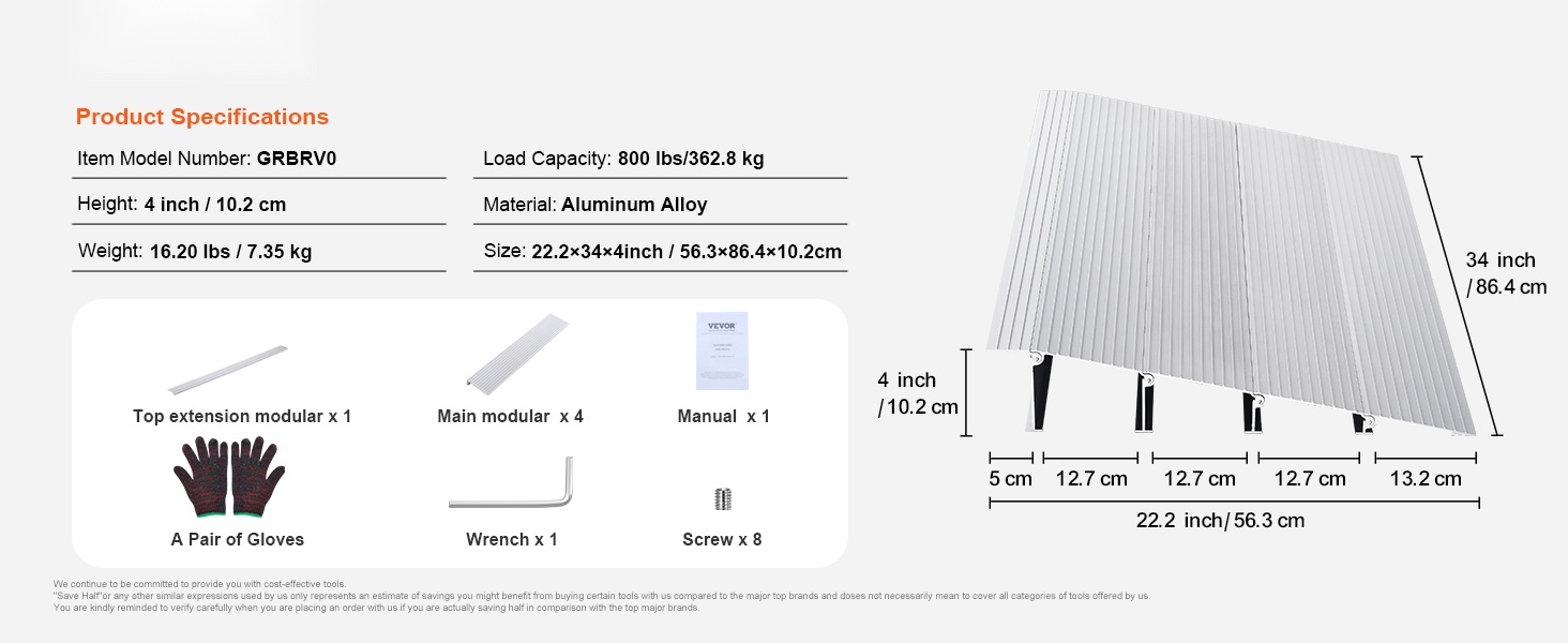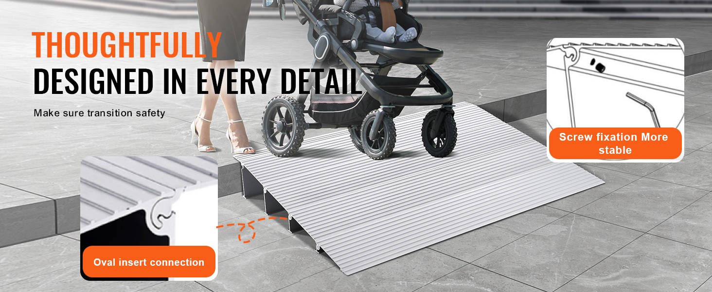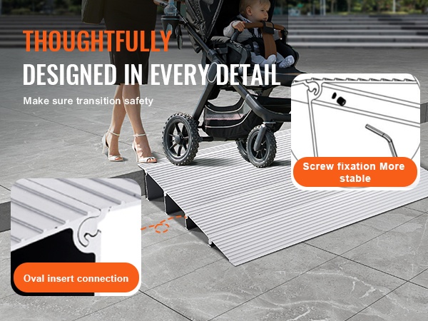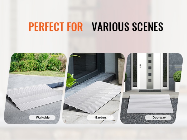 Ramppi on suunniteltu kantamaan jopa 800 lbs / 362.8 kg, joten se tarjoaa tukevan ja turvallisen alustan pyörätuoleille, skoottereille ja muille pyörällisille apuvälineille. Vakaa rakenne auttaa ylittämään kynnykset ilman nykimistä ja ylimääräistä voimaa.