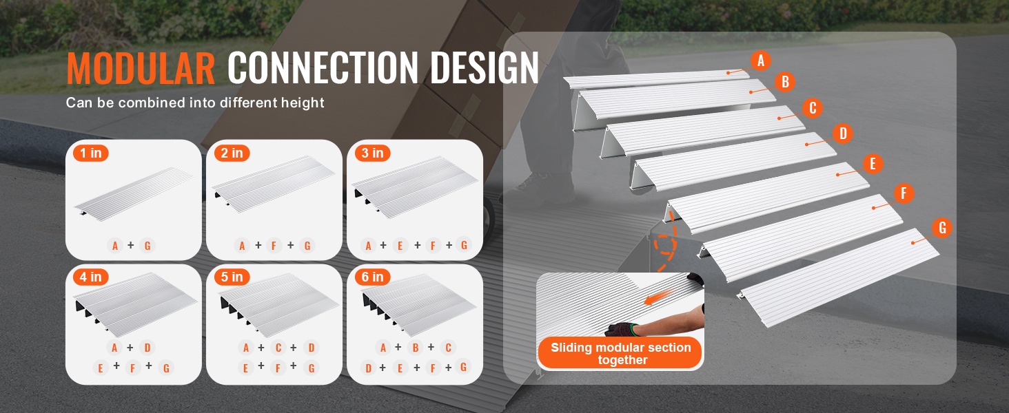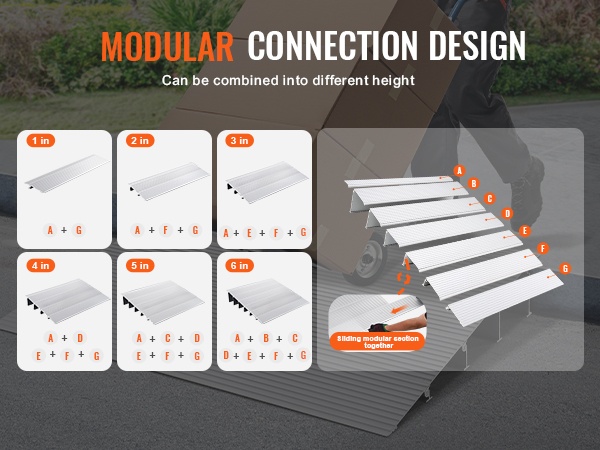 Kynnysramppi alumiiniseosta 2,5 cm 362,8 kg kantavuus säädettävä modulaarinen pyörätuoleille skoottereille