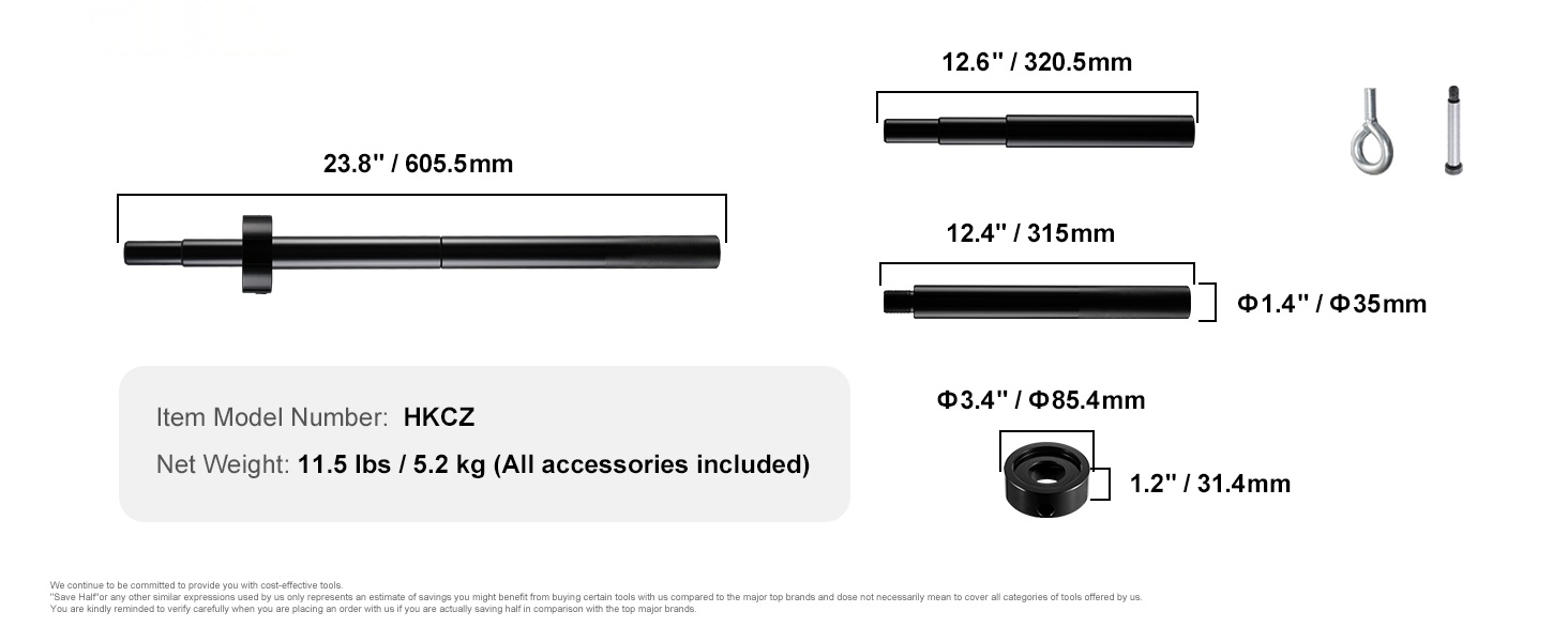 14-osainen laakerinulosvetosarja lämpökäsitelty 45-teräs 5t vetokyky jakajaleuat 5,1cm ja 7,6cm