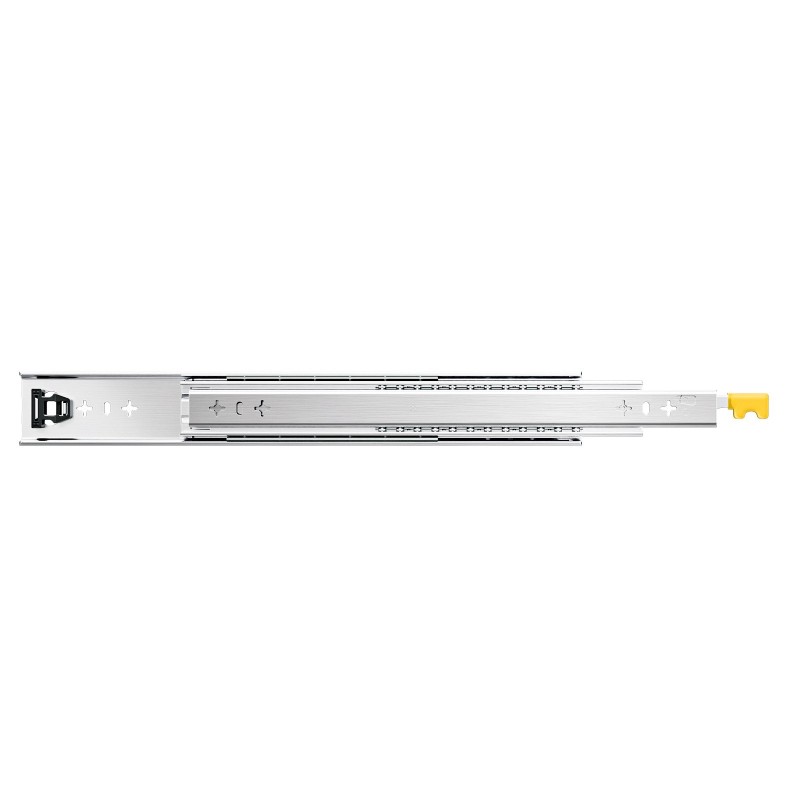 Täyden ulosvedon lukittuvat laatikkokiskot raskaaseen käyttöön. Kiskot on valmistettu kestävästä teräksestä, niissä on kuulalaakerit ja sivukiinnitys, joten laatikko liukuu tasaisesti myös suurilla kuormilla. Lukitustoiminto pitää laatikon turvallisesti suljettuna tai täysin avattuna.
