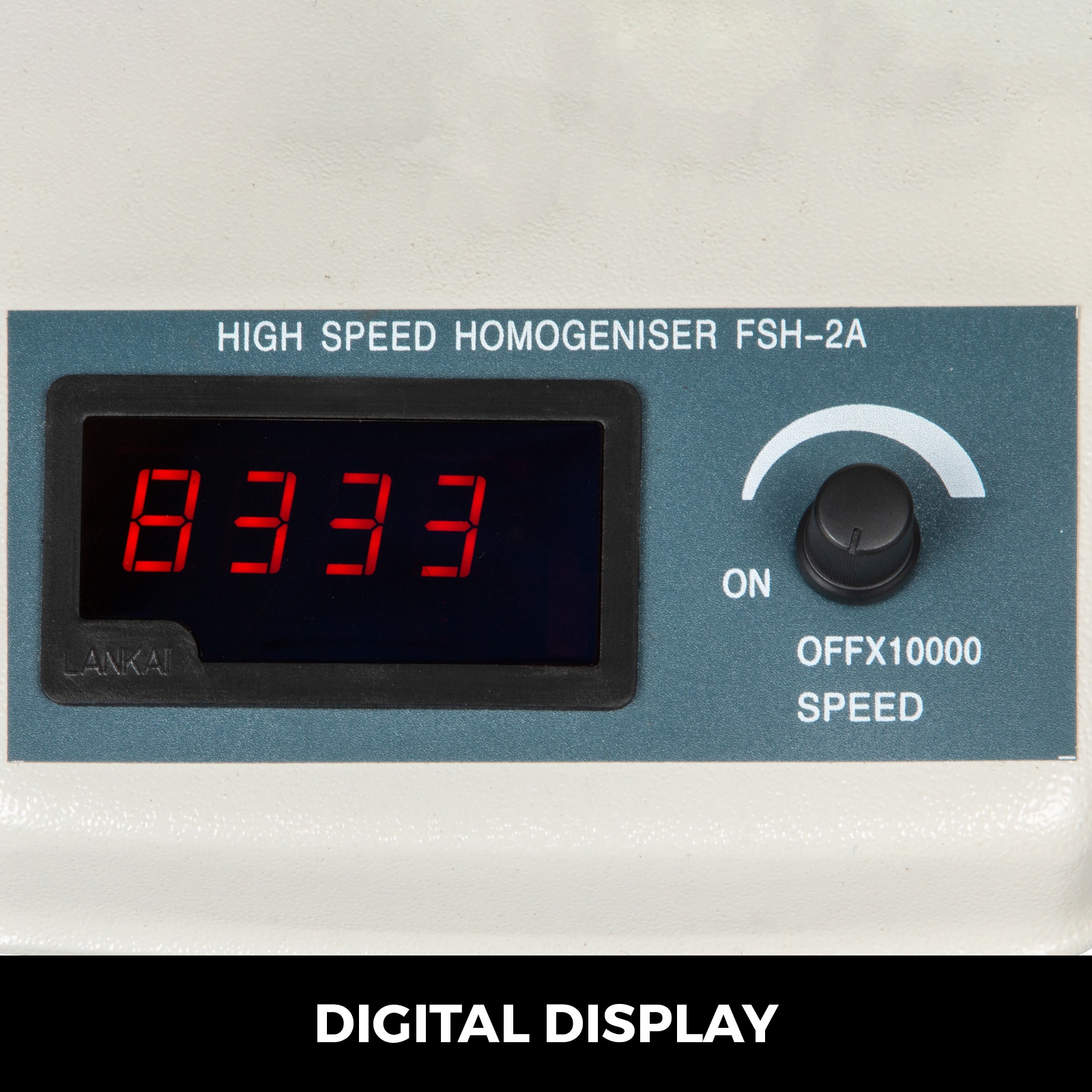 Laitteessa on tarkka digitaalinen näyttö ja kehittynyt elektroniikka. Kun homogenisaattori on käynnissä, pyörimisnopeus on helppo nähdä selkeästi ja suoraan näytöltä, mikä helpottaa prosessin seurantaa ja toistettavuutta.