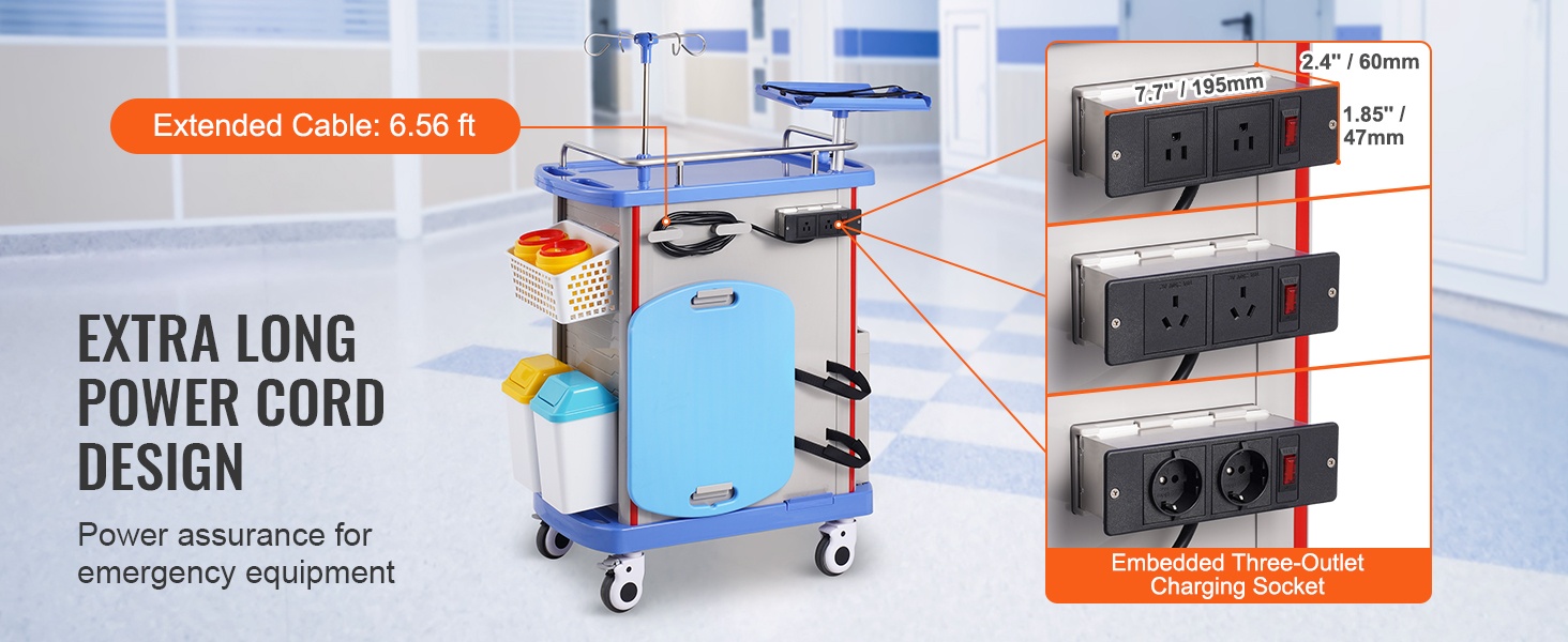 Sivukahvoilla varustetut tasot helpottavat vaunun käsittelyä. Kaksitasoiset tarjotin- ja laatikkoratkaisut helpottavat usein käytettyjen tarvikkeiden pitämistä helposti saatavilla, mikä tehostaa työtä ja vähentää turhaa liikkumista.