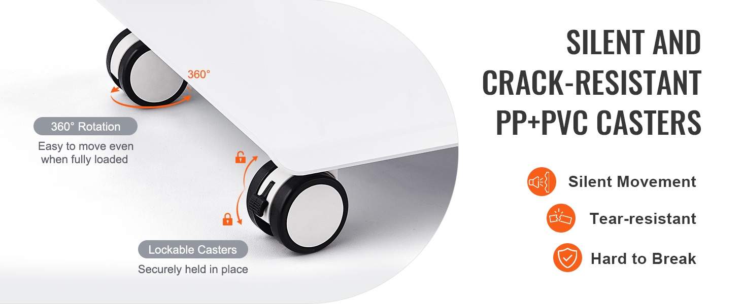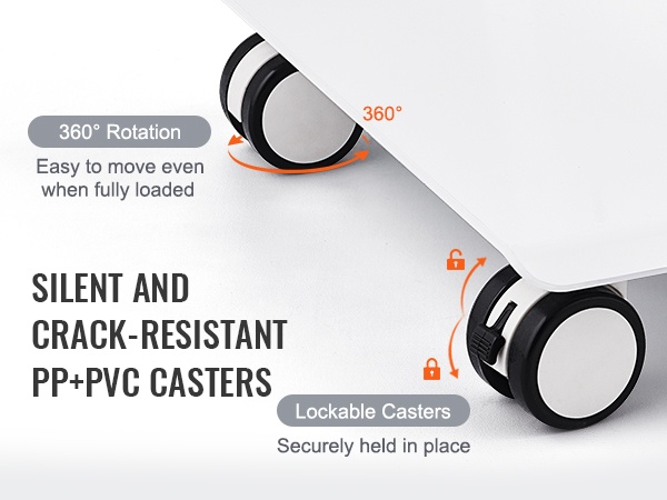 Neljän 360° kääntyvän pyörän ansiosta vaunua on helppo liikutella myös raskaiden laitteiden kanssa. Sivulle sijoitettu kahva helpottaa ohjaamista, ja kaksi jalalla lukittavaa pyörää pitävät vaunun tukevasti paikoillaan työskentelyn aikana.