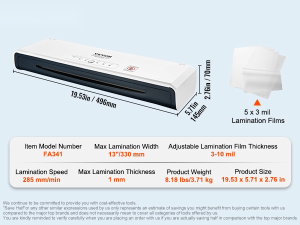 - Maksimilaminointileveys: 13"/330 mm