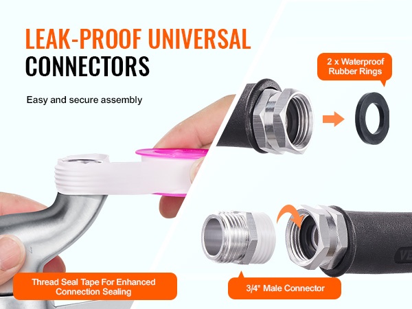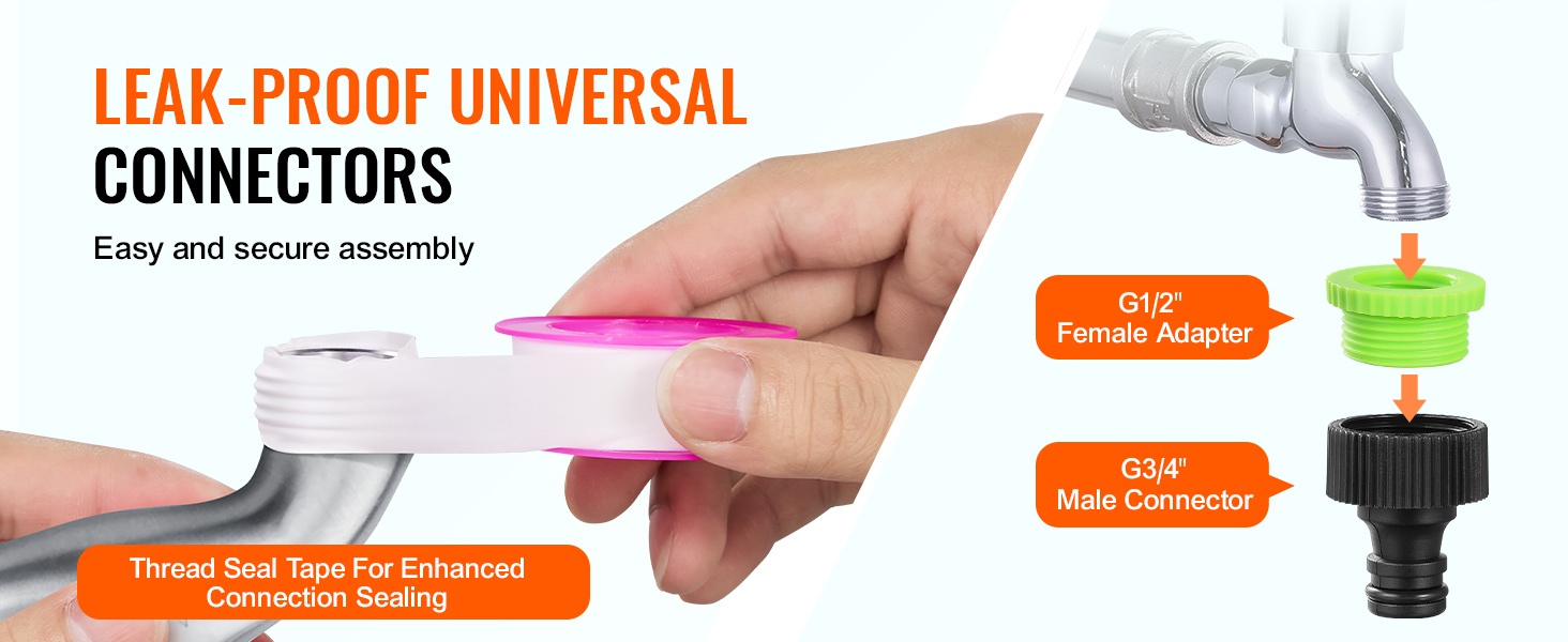 Letku toimitetaan pikaliitinsetillä ja kierrelukitenauhalla. Liittimet on helppo asentaa, ja mukana tuleva teippi auttaa tiivistämään liitokset, jotta vuotoja ei synny käytön aikana.