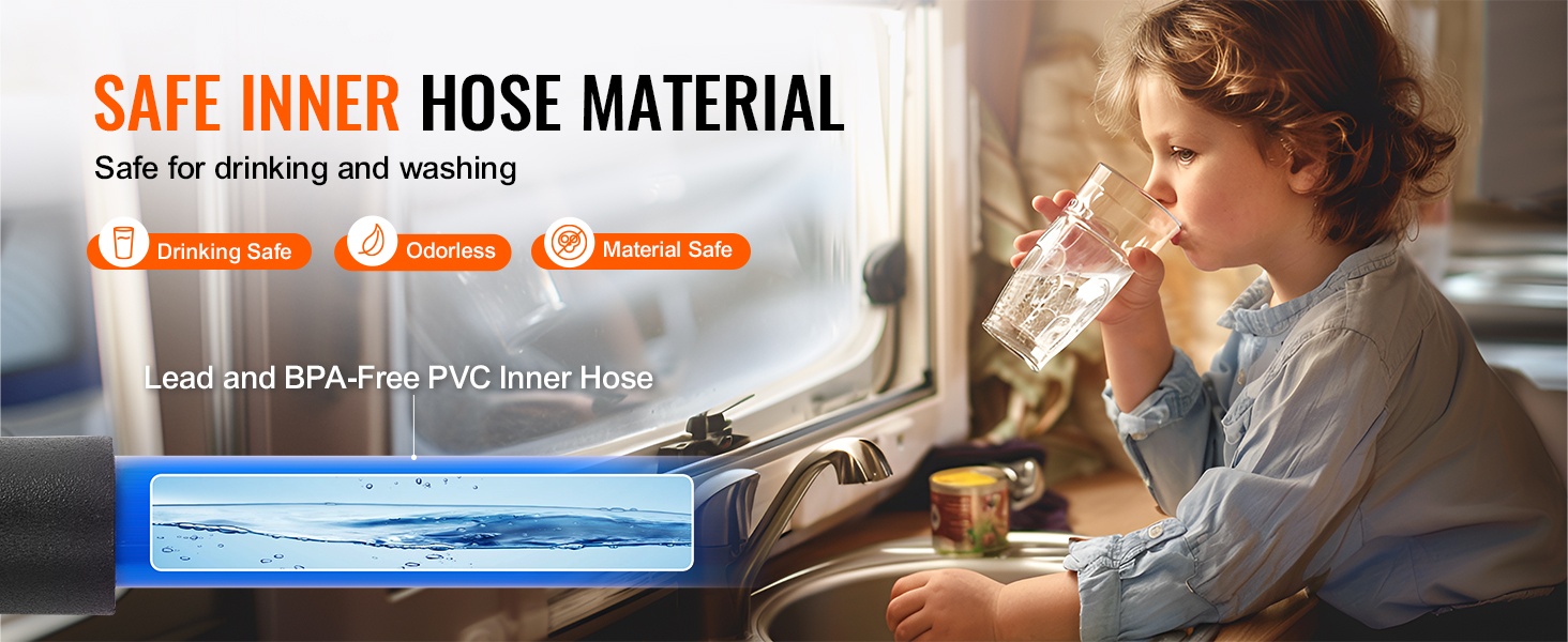 Sisäletku on valmistettu juomavedelle turvallisesta PVC-materiaalista, joka on täysin lyijytön ja BPA-vapaa. Vesi pysyy puhtaana ja turvallisena juomiseen, peseytymiseen sekä kasvien kasteluun.