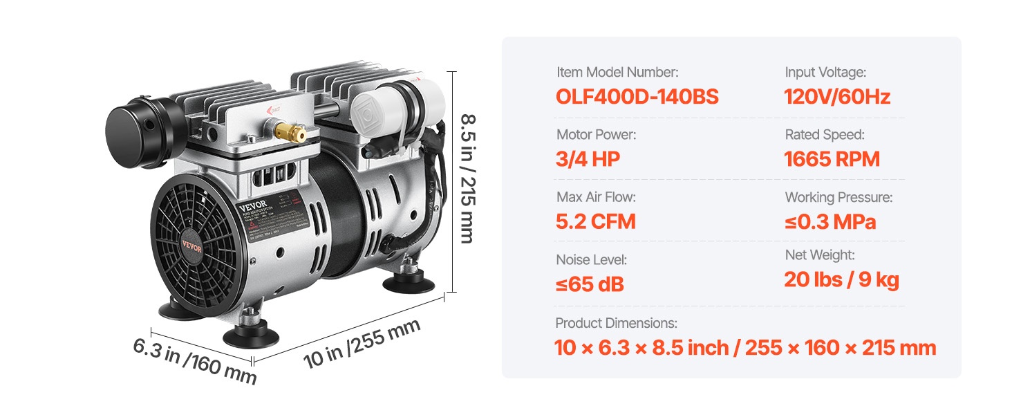 - Teho 3/4 HP / 550 W ja ilmamäärä enintään 5.2CFM.
