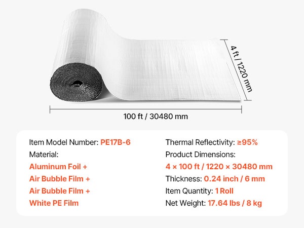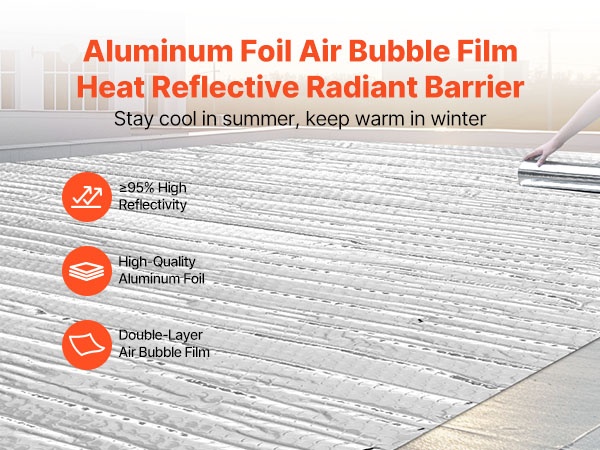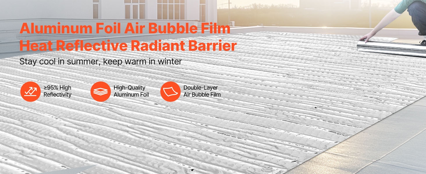 Tämä lämpöä heijastava eristerulla auttaa pitämään tilat viileämpinä kesällä ja lämpimämpinä talvella. Heijastava alumiinifolio, EPE-vaahtoydin ja valkoinen PE-kalvo jopa ≥95 %:n lämpöheijastavuudella vähentävät auringon säteilyn vaikutusta ja pienentävät lämpöhäviötä.