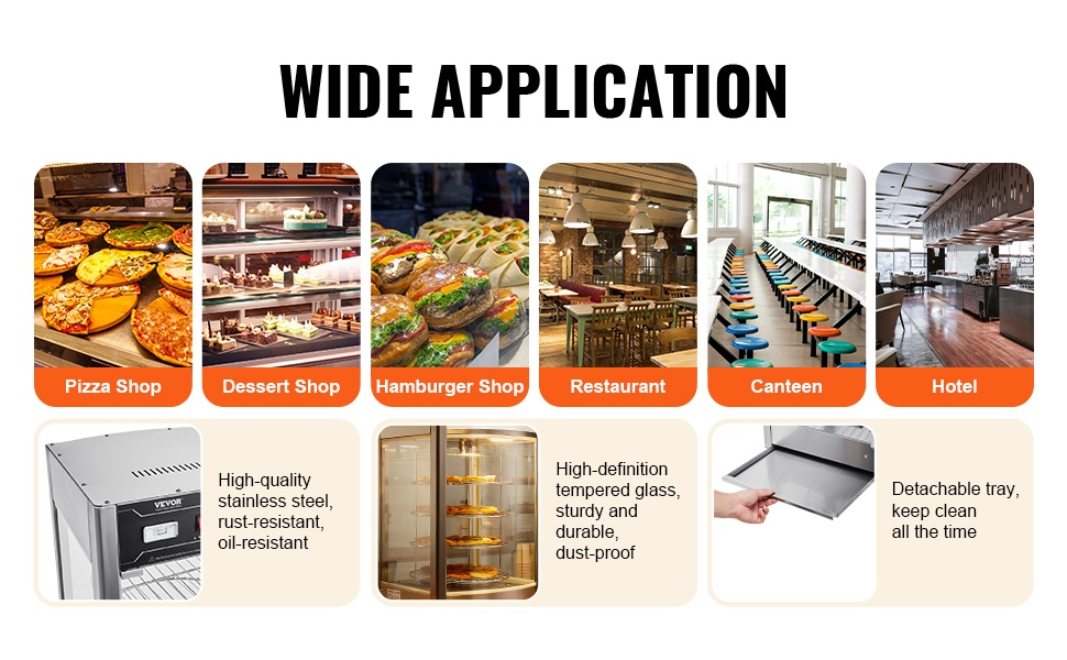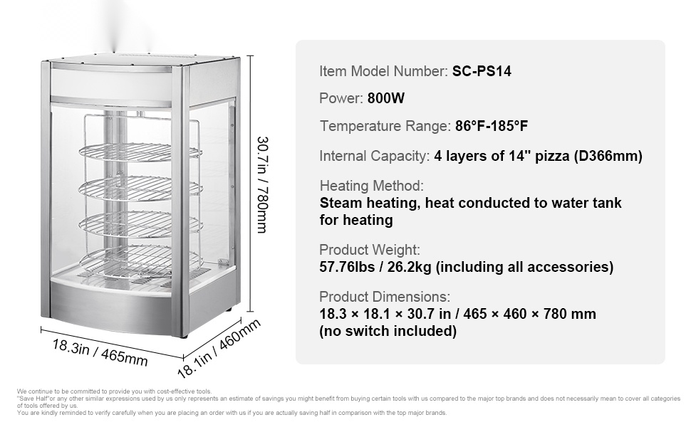 Lasivitriinillä varustettu lämpökaappi yhdistää tehokkaan lämmönsäilytyksen ja selkeän esillepanon. Nelitasoinen pyörivä rakenne pitää esimerkiksi 14-tuumaiset pizzat tasaisesti lämpiminä ja hyvin näkyvillä ravintoloissa, pikaruokapaikoissa, kahviloissa ja hotelleissa.